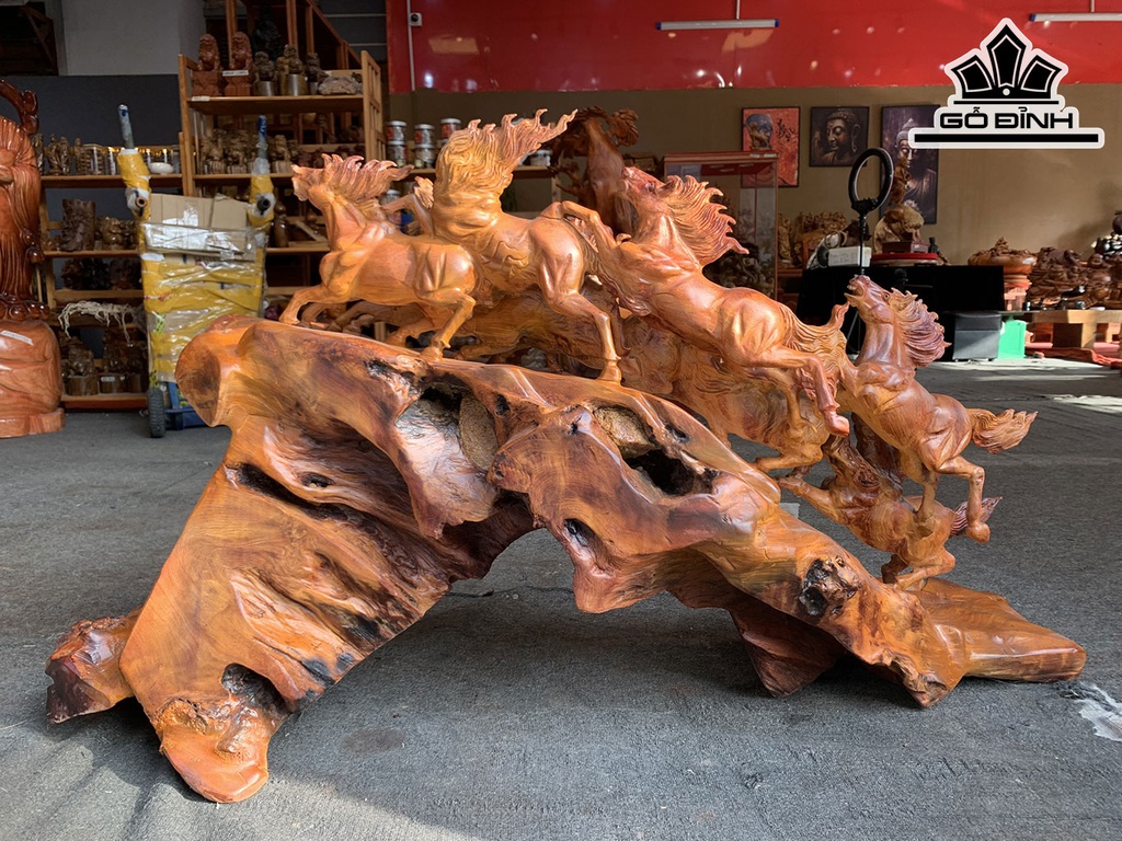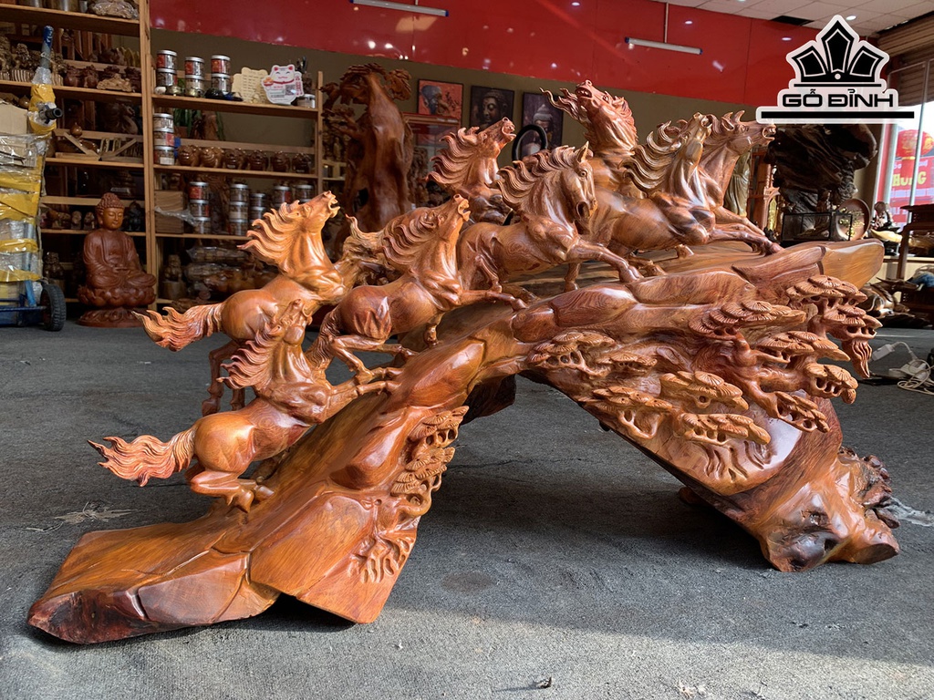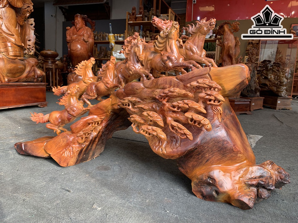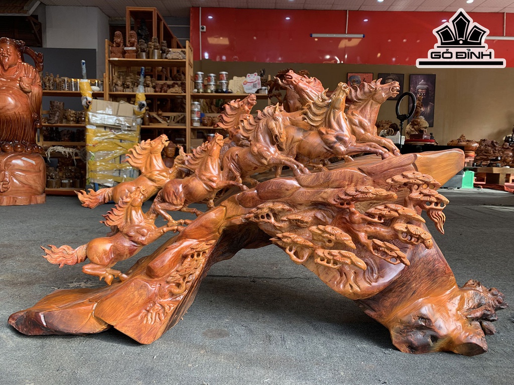 Tượng Bát Mã Quần Tùng Gỗ Hương Cao 66 Ngang 118 Sâu 38 (cm)