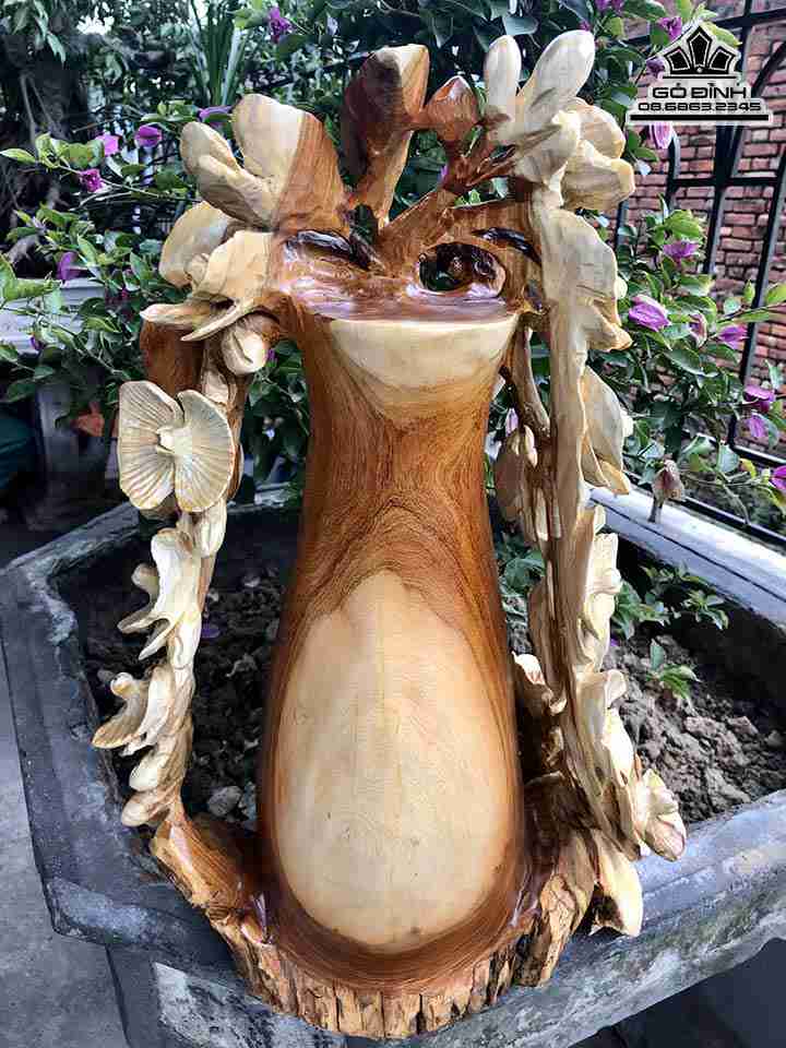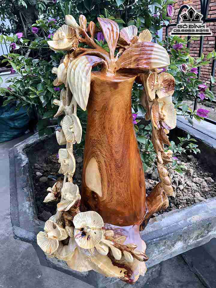 Tượng Bình Hoa Lan Gỗ Hương Cao 48 Rộng 33 Dày 25 (cm)