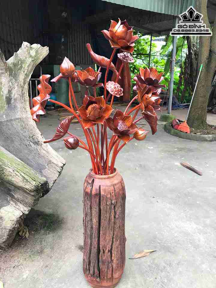 Tượng Bình Hoa Sen Gỗ Hương Cao 135 Xòe 70 Bình Cao 68 Đường Kính 25 (cm)