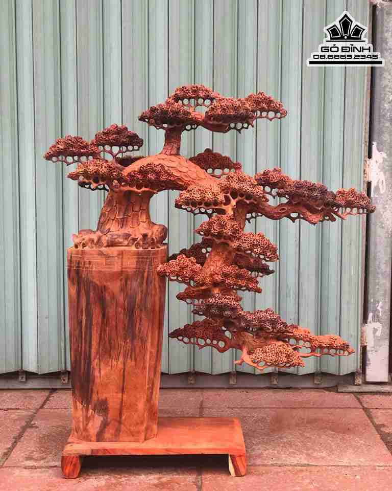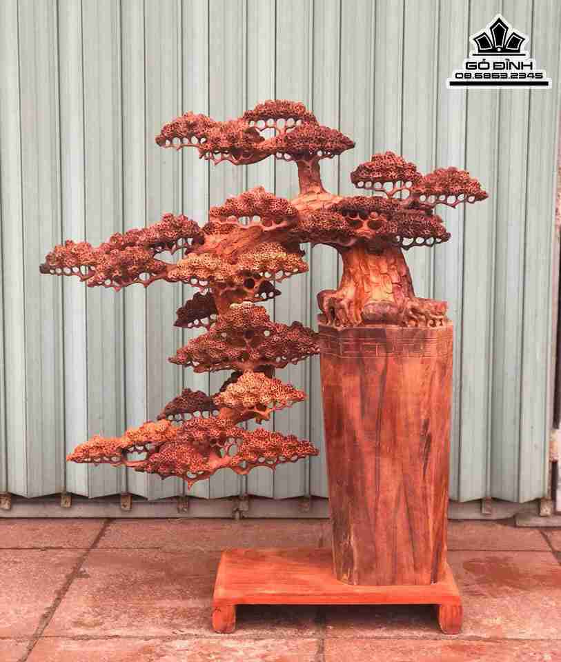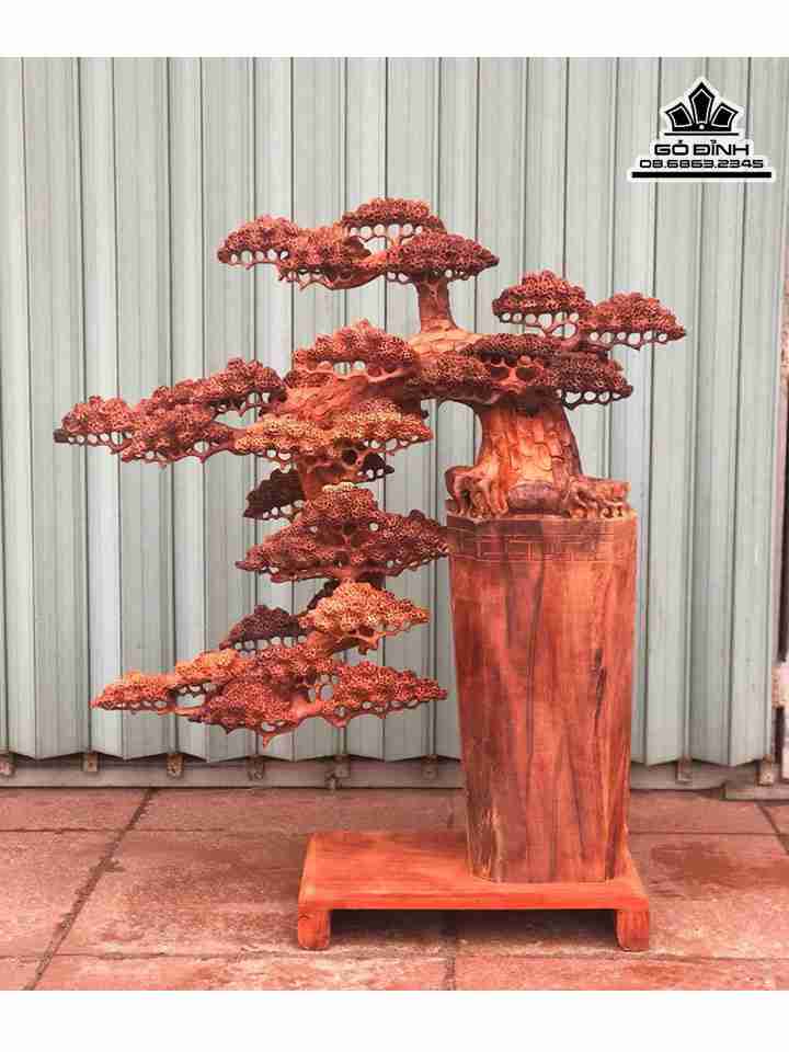 Tượng Bình Tùng Bon Sai Gỗ Hương Cao 76 Ngang 65 Sâu 22 (cm)