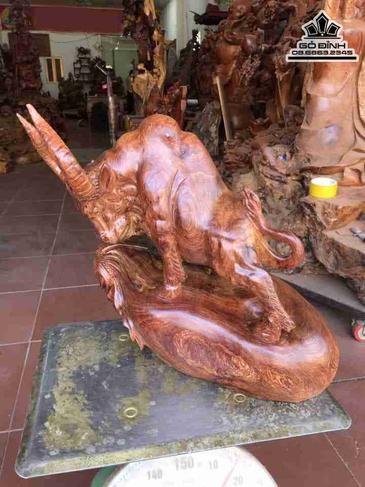 Tượng Bò Tót Gỗ Cẩm Rộng 50 Sâu 25 Cao 40 (cm)