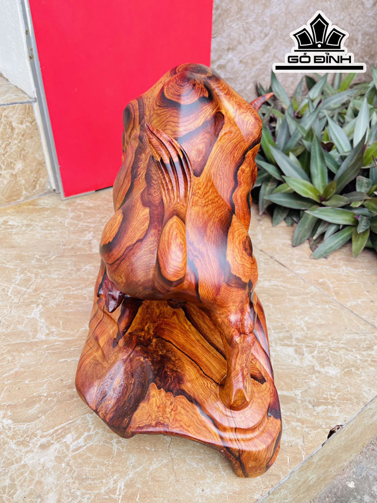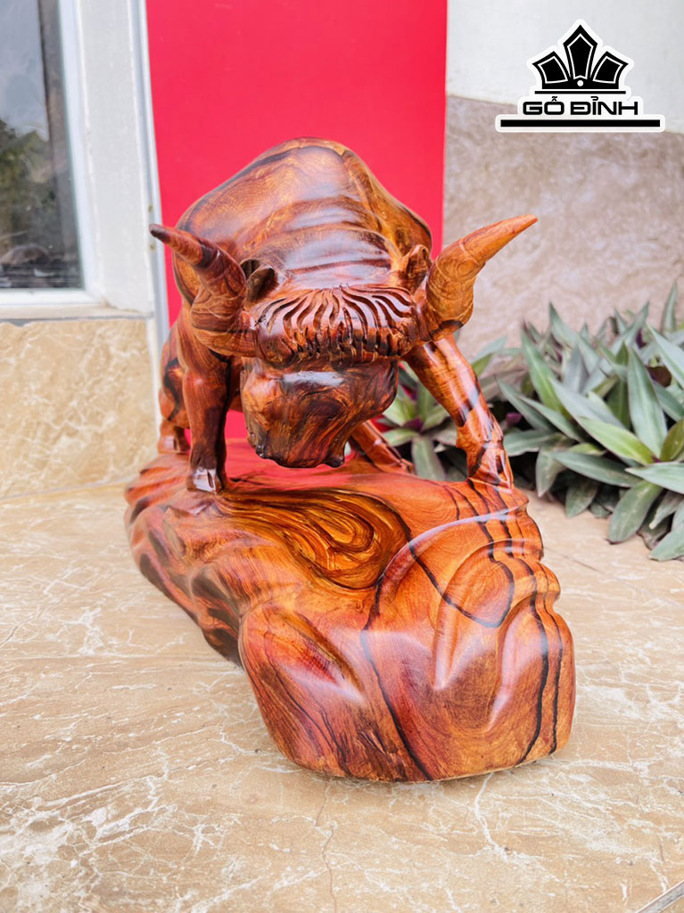 Tượng Bò Tót Gỗ Cẩm Cao 28 Ngang 42 Sâu 20 (cm)