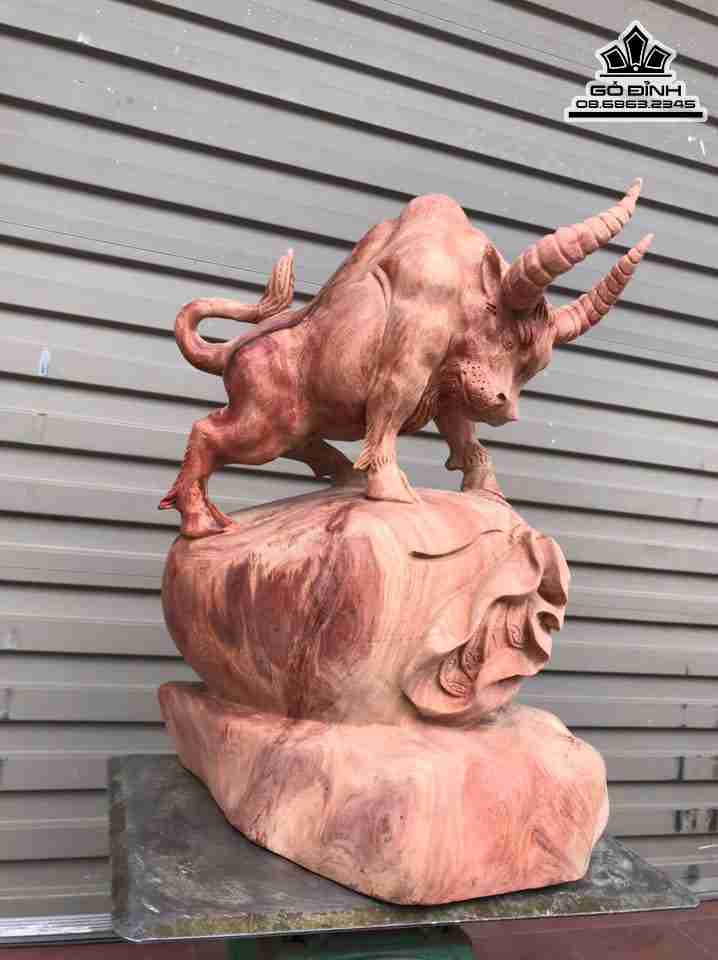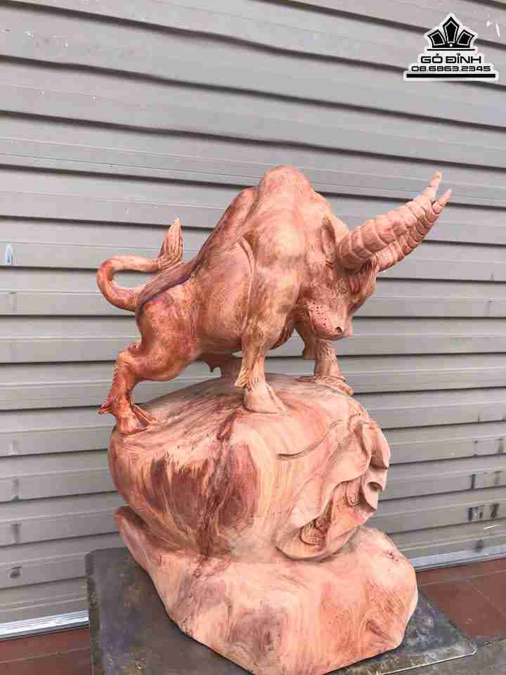 Tượng Bò Tót Gỗ Hương Cao 57 Rộng 45 Dày 25 (cm)