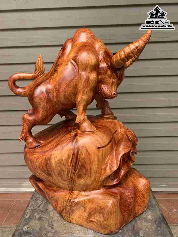 Tượng Bò Tót Gỗ Hương Cao 57 Ngang 42 Sâu 25 (cm)