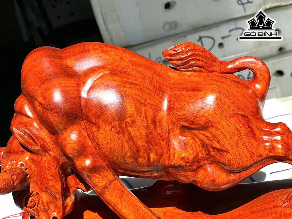 Tượng Bò Tót Gỗ Hương Cao 28 Ngang 40 Sâu 17 (cm)