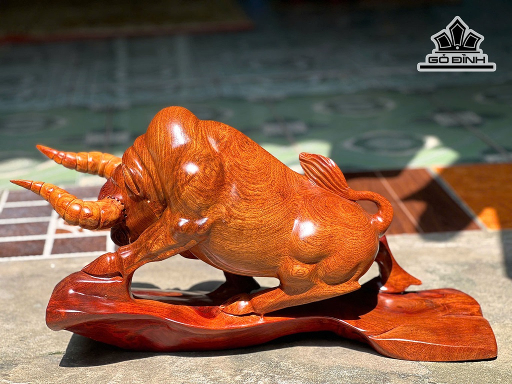 Tượng Bò Tót Gỗ Hương Cao 31 Ngang 59 Sâu 20 (cm)