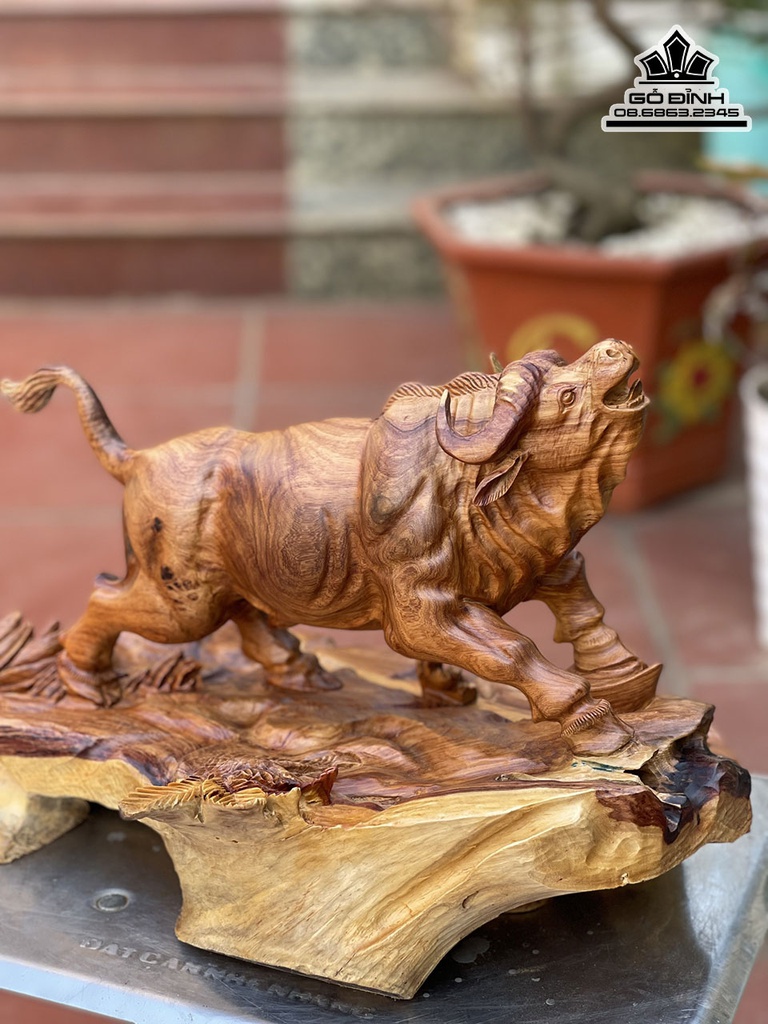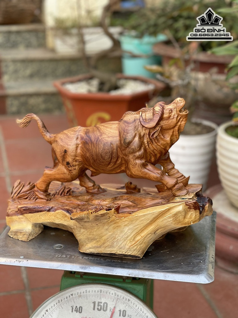 Tượng Bò Tót Gỗ Hương Việt Cao 29 Ngang 42 Sâu 25 (cm)