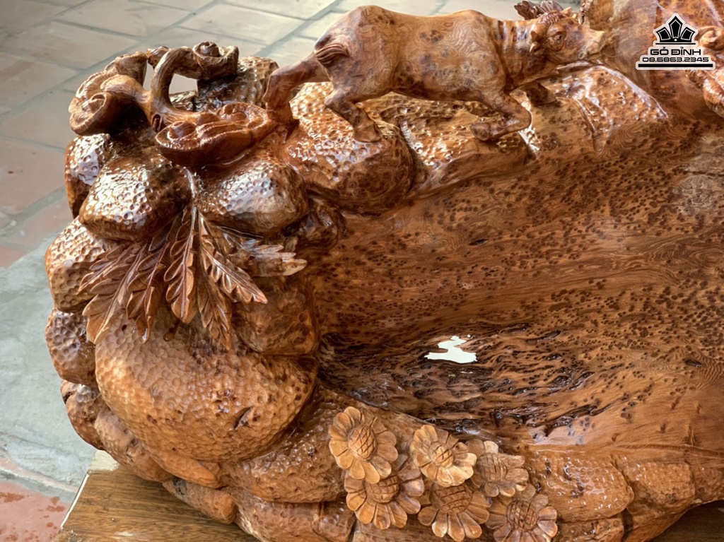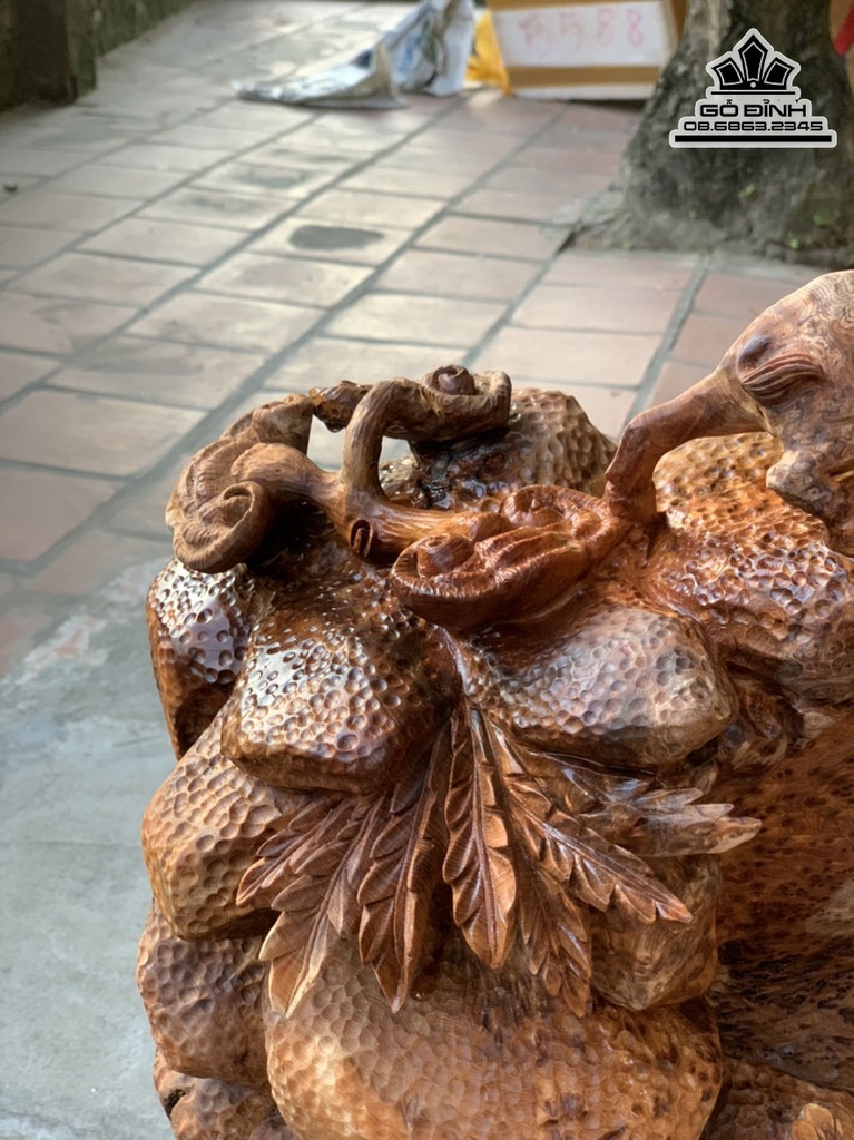 Tượng Bò Tót Gỗ Nu Ngọc Am Cao 66 Ngang 70 Sâu 36 (cm)