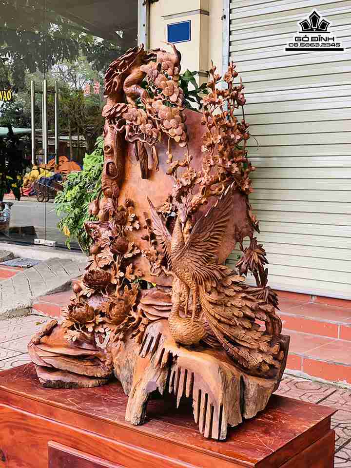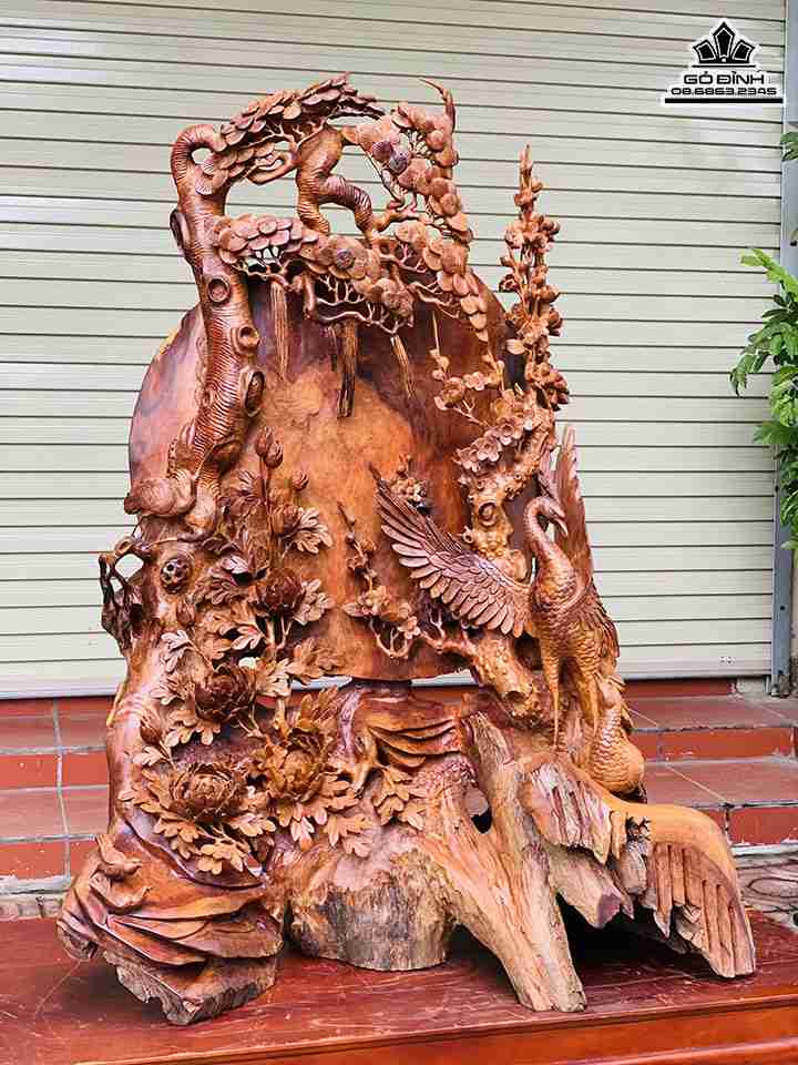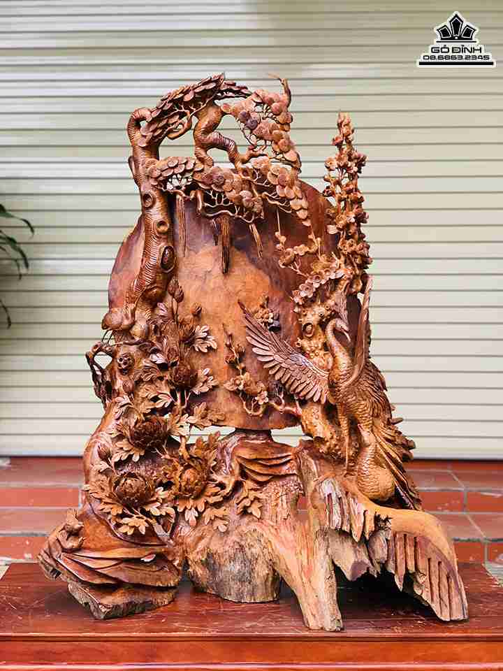 Tượng Bốn Mùa Sung Túc Gỗ Sun Hương Việt Cao 115 Rộng 93 Dày 60 (cm)