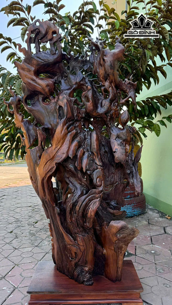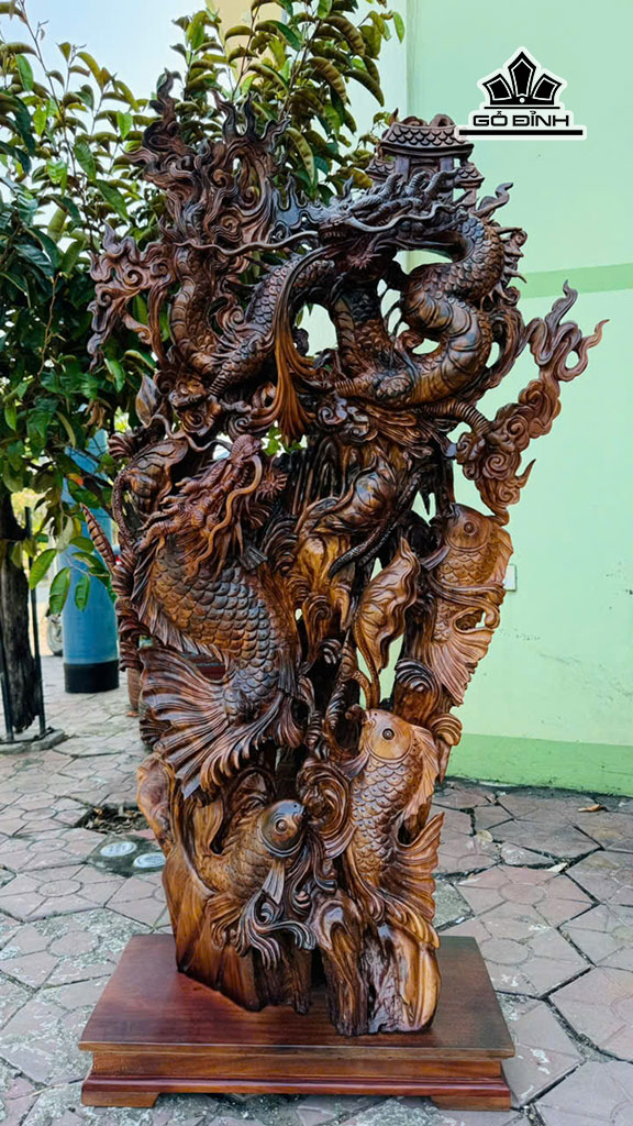 Tượng Cá Chép Hóa Rồng Gỗ Bách Xanh Cao Cả Kỷ 135 - Riêng Kỷ Cao 10 Ngang 70 Sâu 28 (cm)