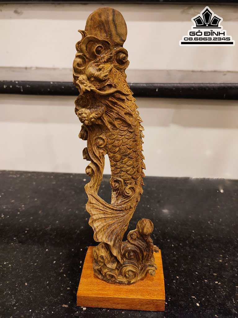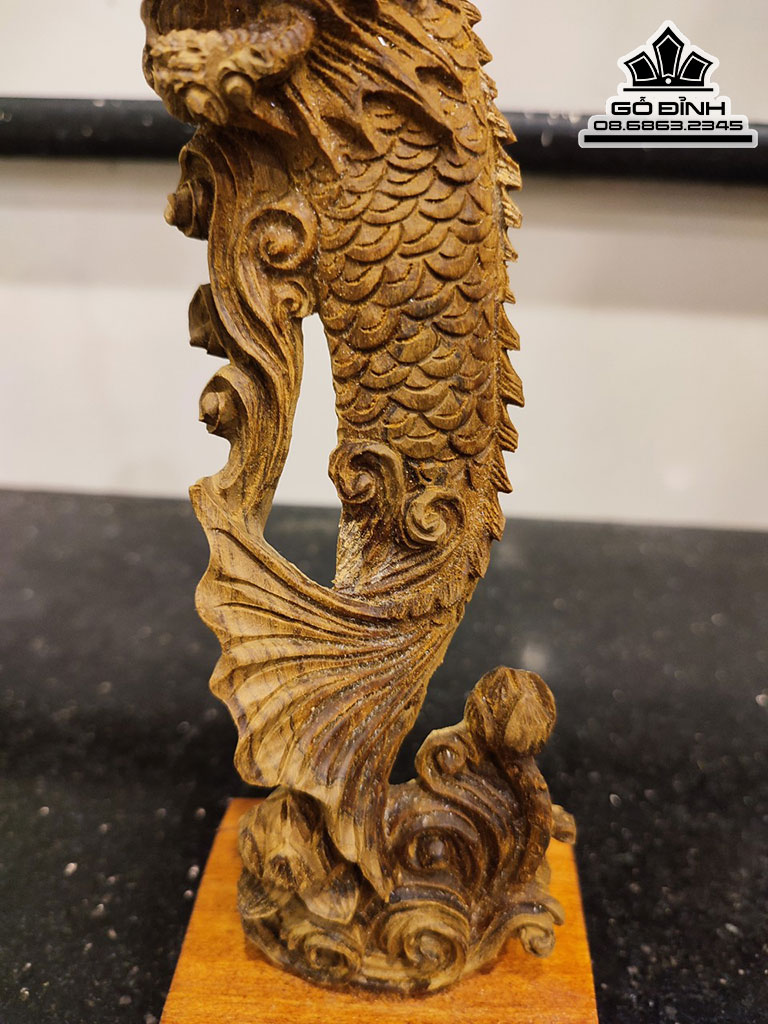 Tượng Cá Chép Hóa Rồng Gỗ Hoàng Đàn Cao 21.5 Ngang 6 Sâu 2.5 (cm)