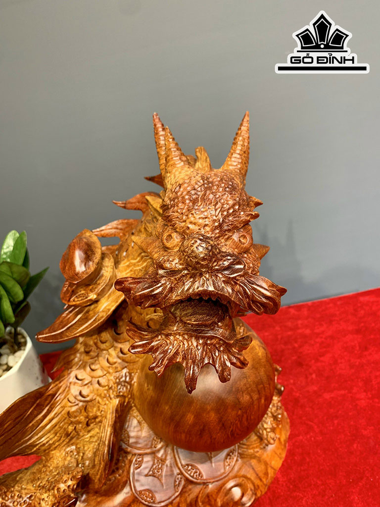 Tượng Cá Chép Hóa Rồng Gỗ Hương Cao 35 Ngang 33 Sâu 16 (cm)
