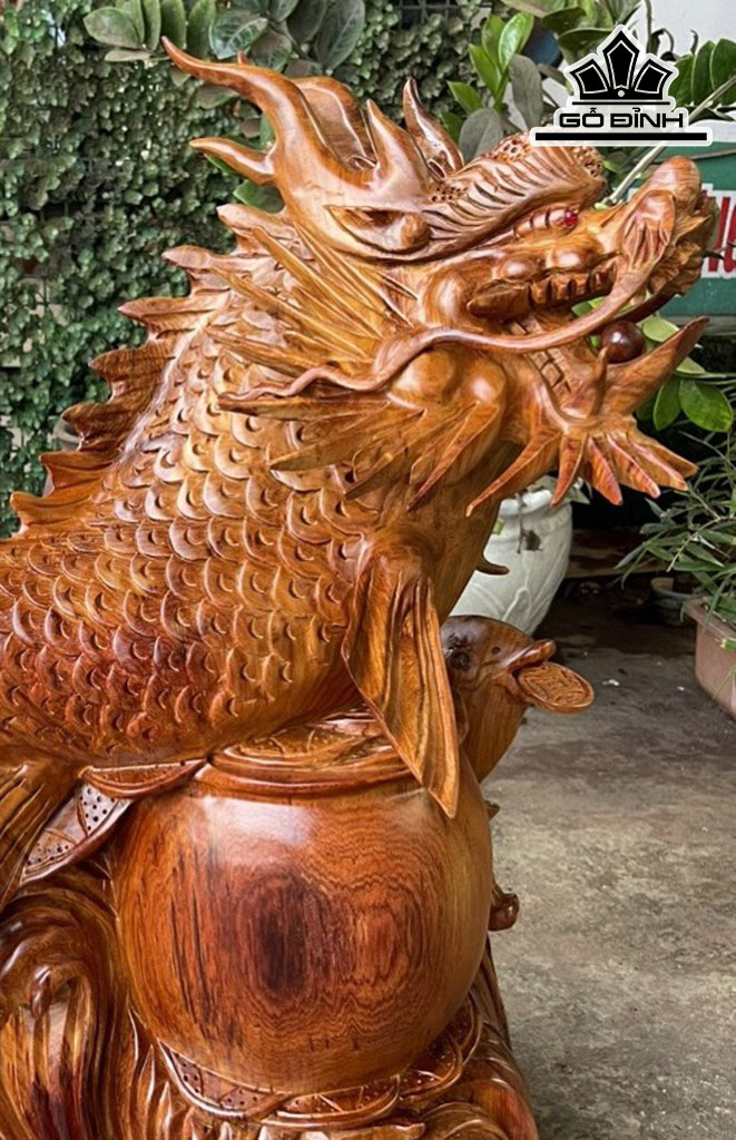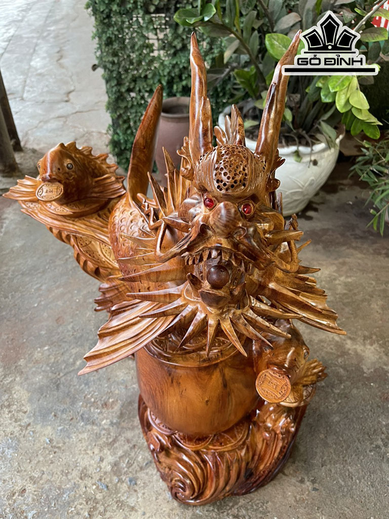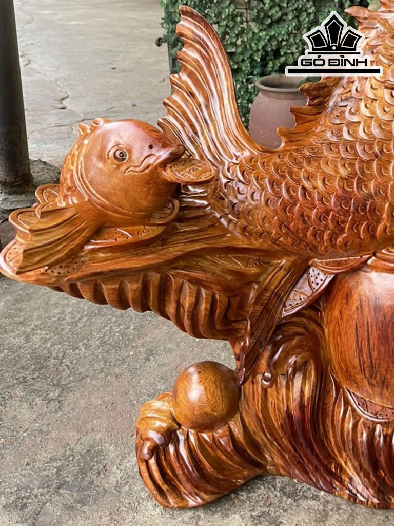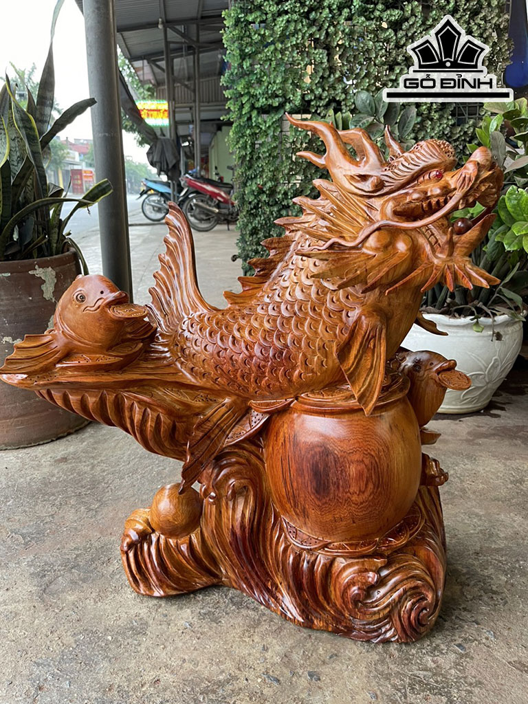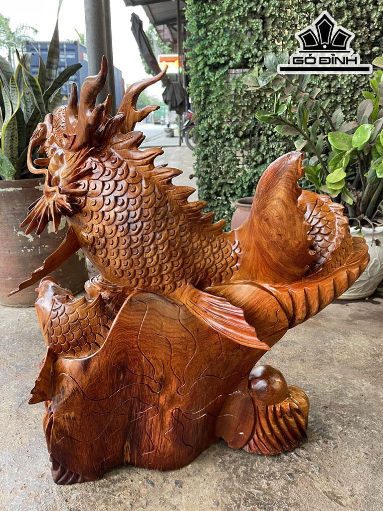 Tượng Cá Chép Hóa Rồng Gỗ Hương Cao 68 Ngang 65 Sâu 30 (cm)