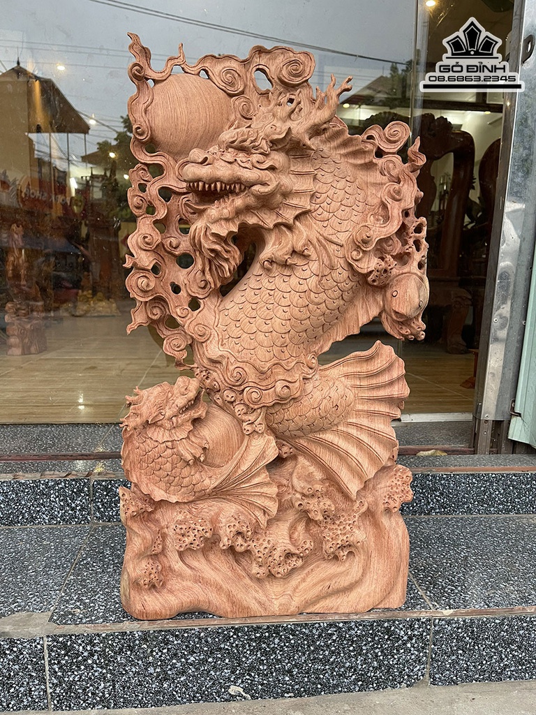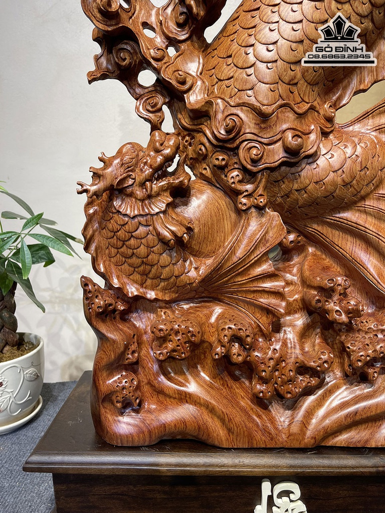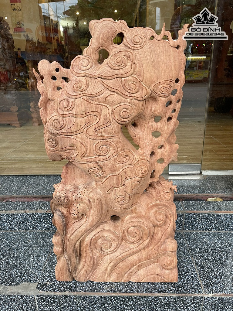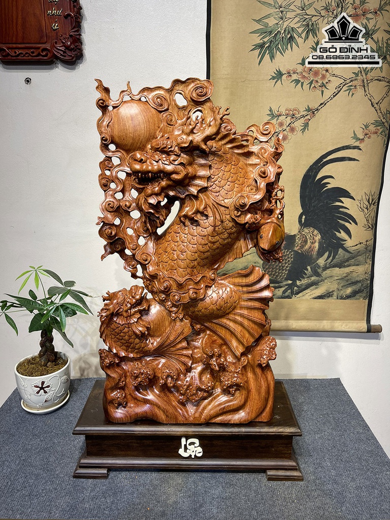 Tượng Cá Chép Hóa Rồng Gỗ Hương Cao 71 Ngang 39 Sâu 14 (cm)