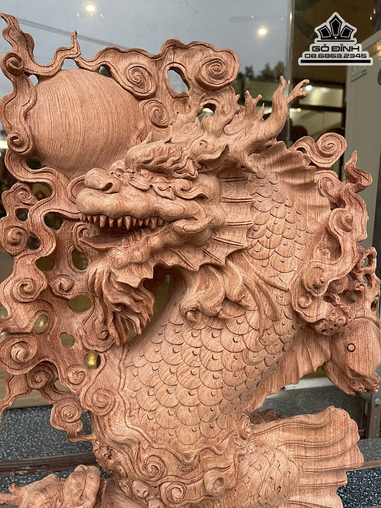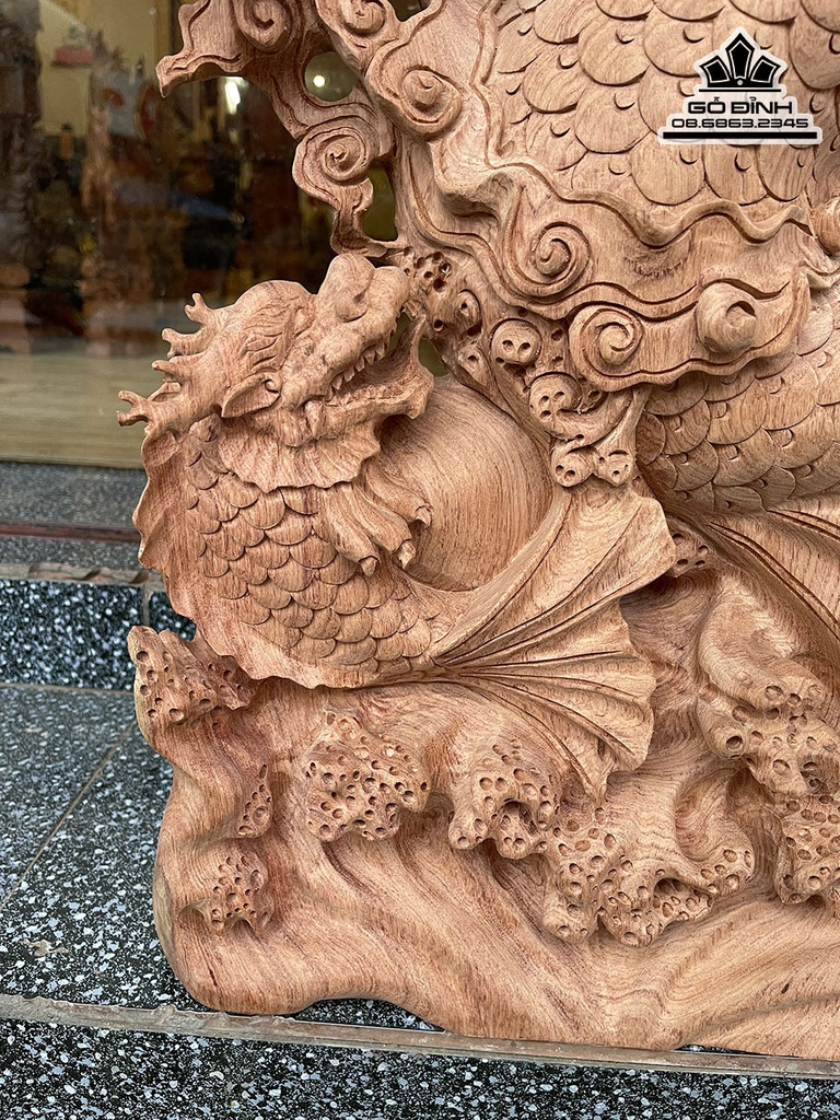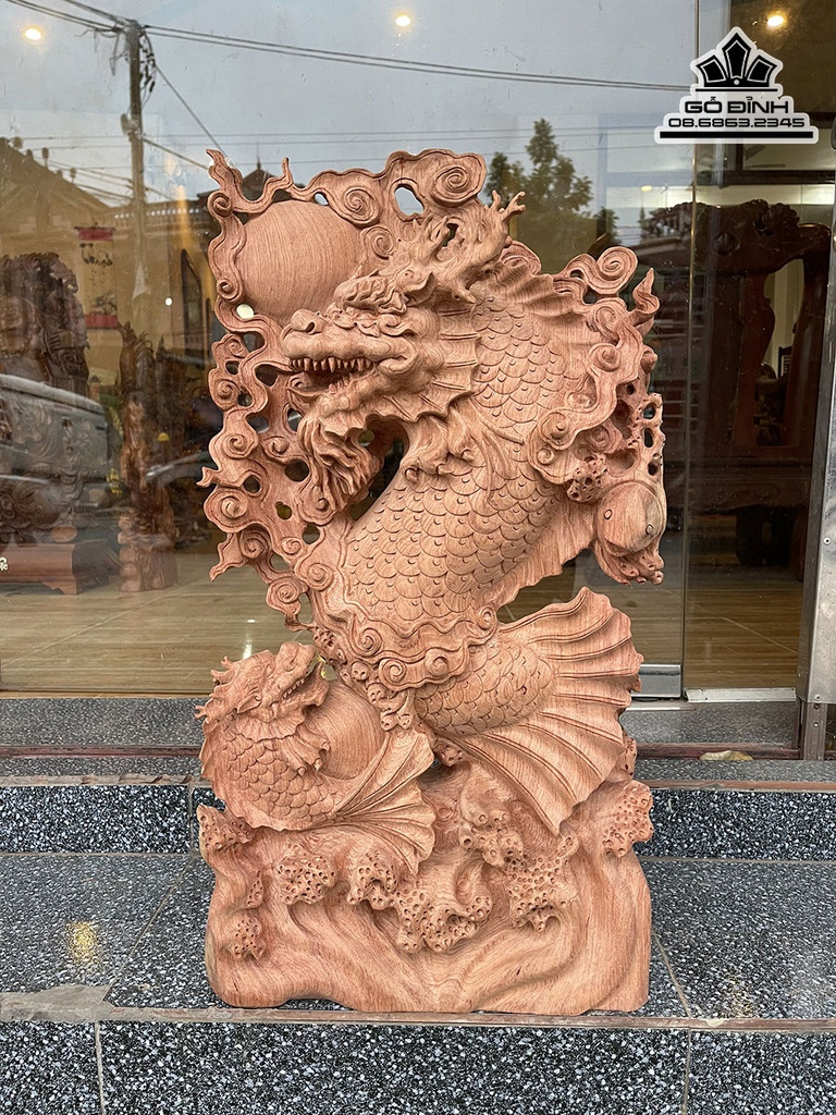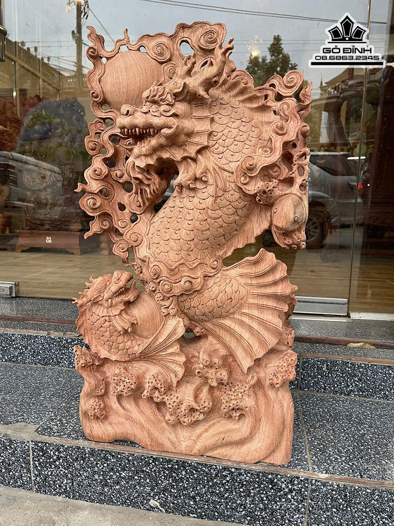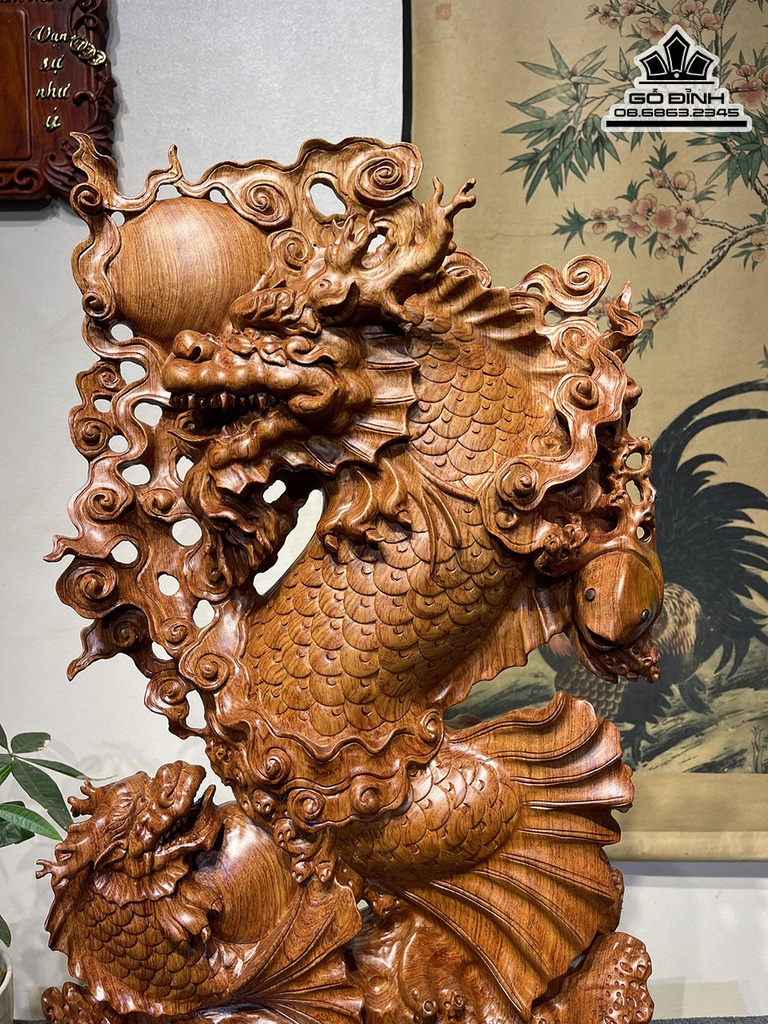 Tượng Cá Chép Hóa Rồng Gỗ Hương Cao 71 Ngang 39 Sâu 14 (cm)