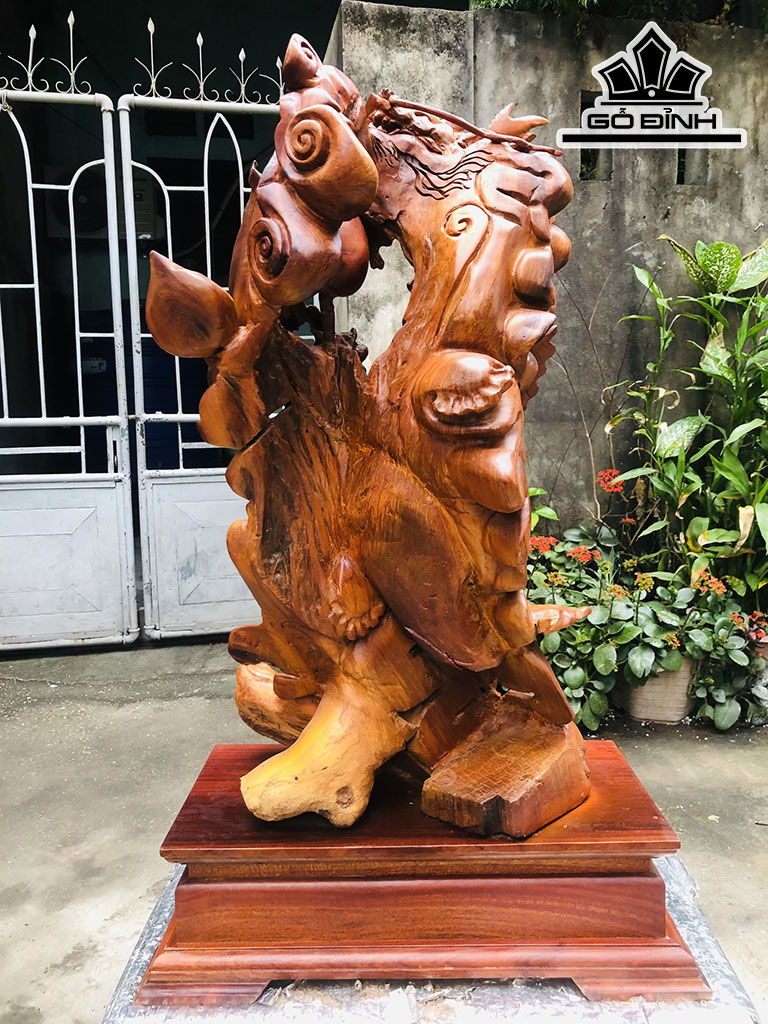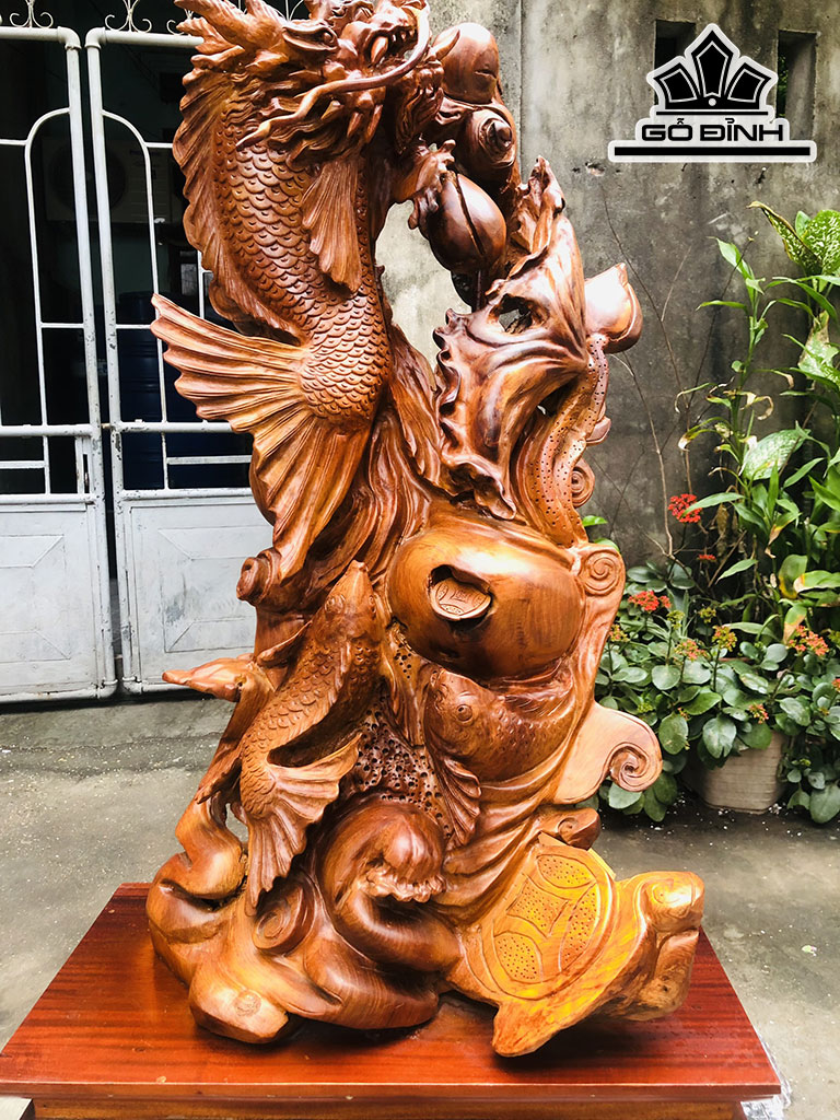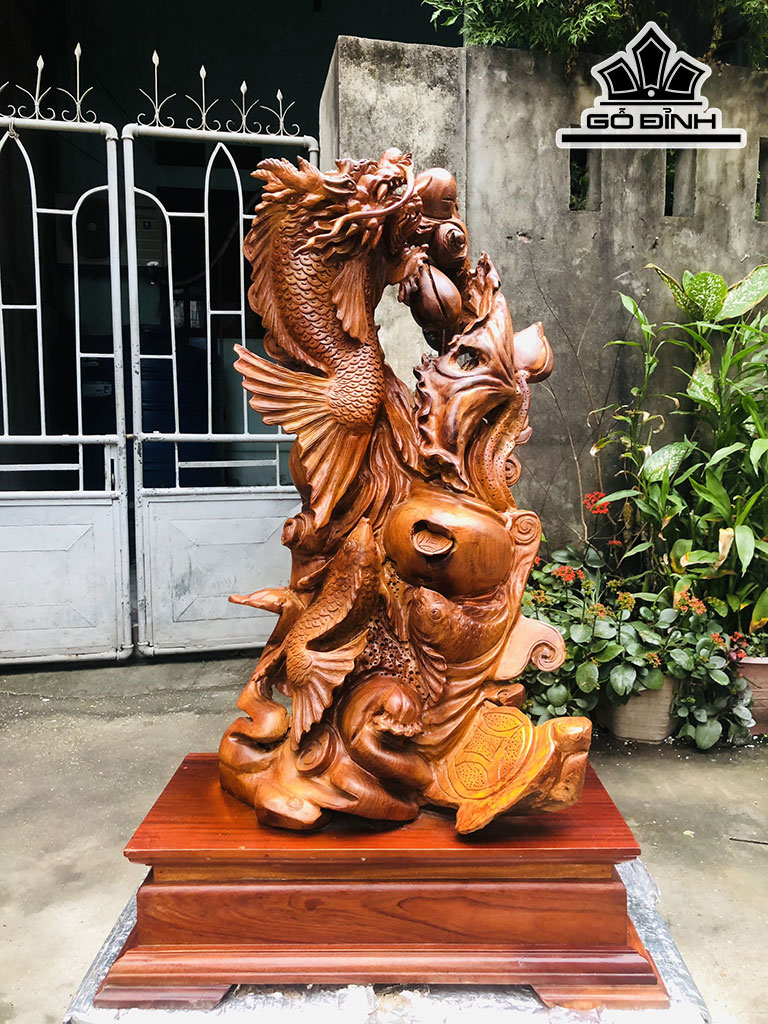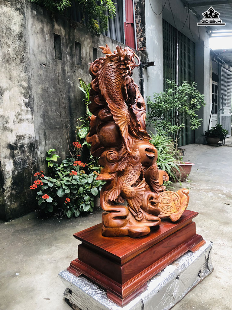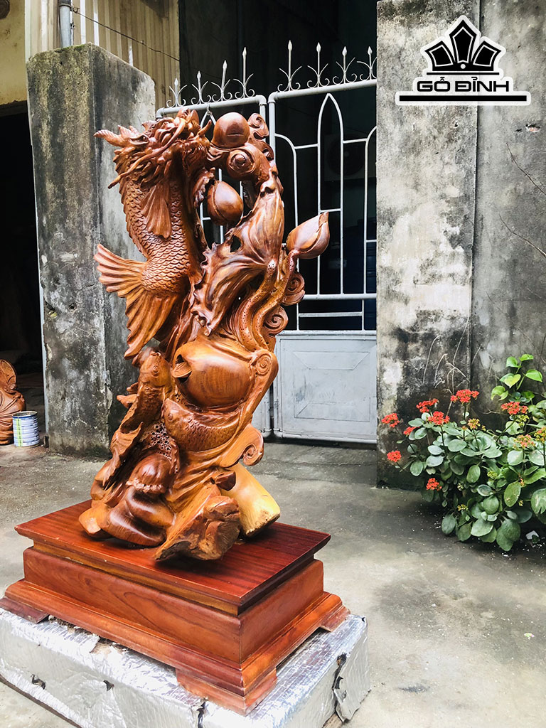 Tượng Cá Chép Hóa Rồng Gỗ Hương Cao Cả Kỷ 100 Ngang 58 Sâu 30 (cm)