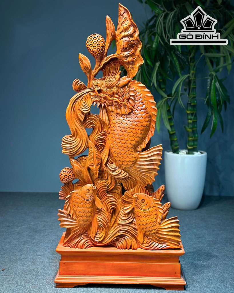 Tượng Cá Chép Hóa Rồng Gỗ Hương Cao Cả Kỷ 110 Ngang 48 Sâu 20 (cm)