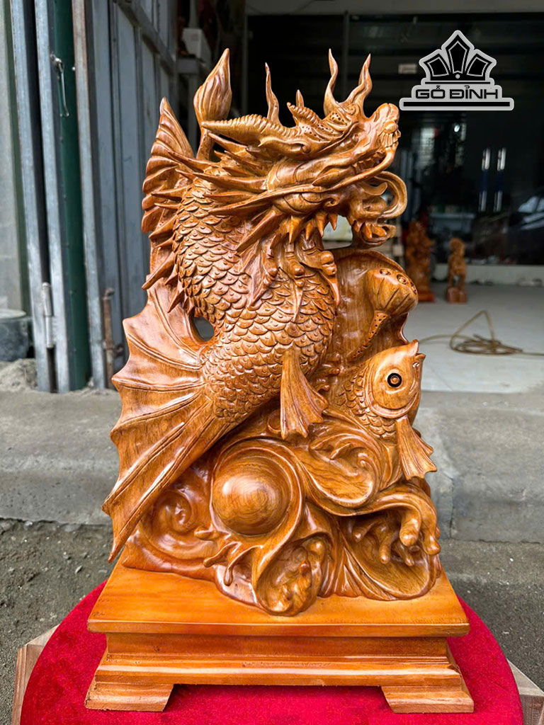 Tượng Cá Chép Hóa Rồng Gỗ Hương Cao Cả Kỷ 55 Ngang 31 Sâu 17 (cm) - Kỷ Cao 8