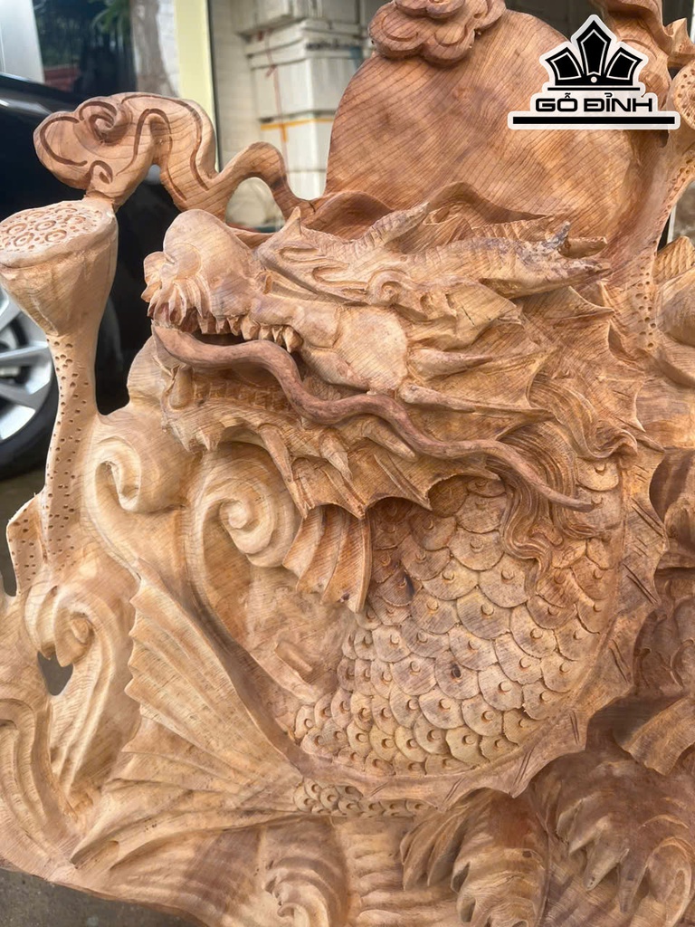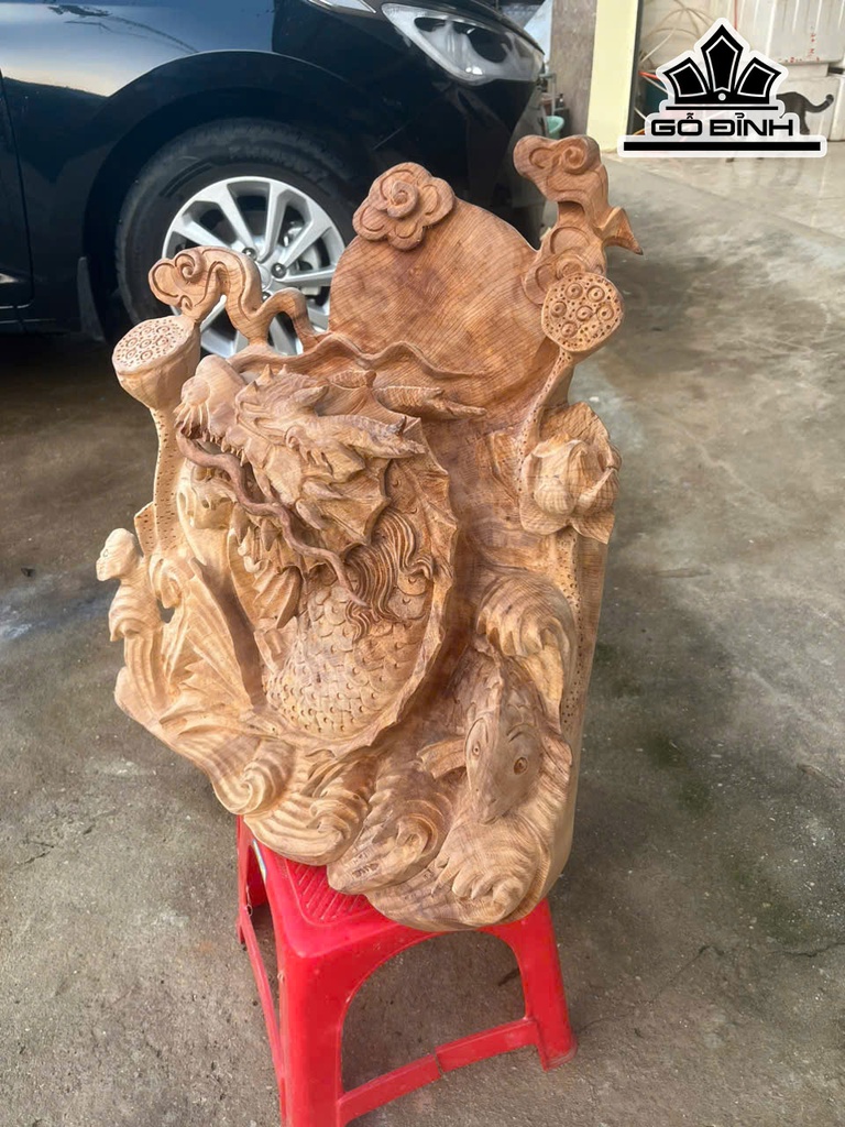Tượng Cá Chép Hóa Rồng Gỗ Ngọc Am Cao 51 Ngang 48 Sâu 20 (cm)