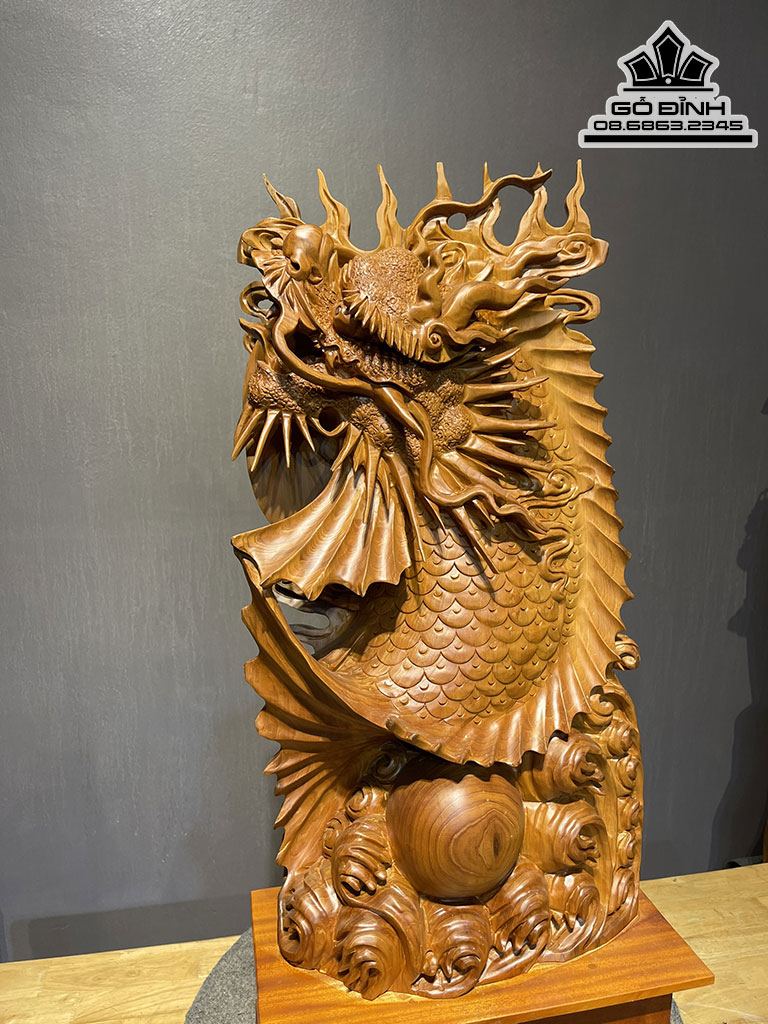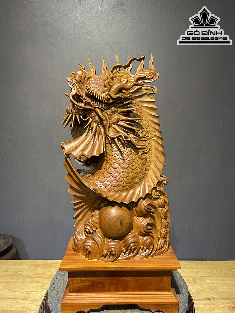 Tượng Cá Chép Hóa Rồng Gỗ Ngọc Am Cao 62 Ngang 33 Sâu 17 Cả Kỷ 78 (cm)