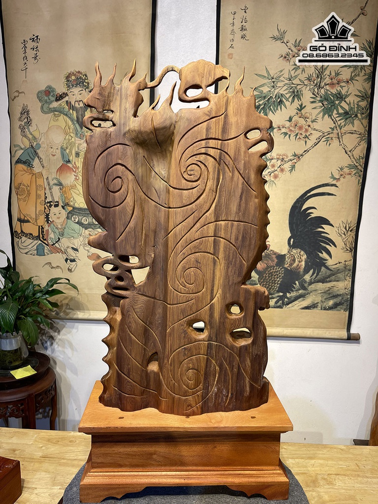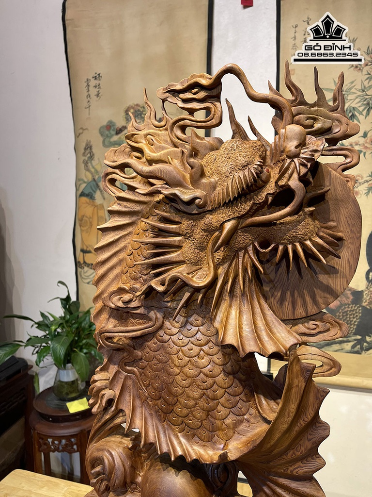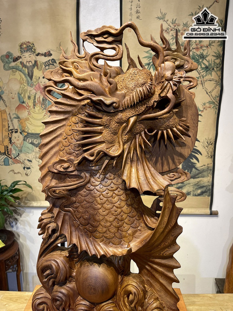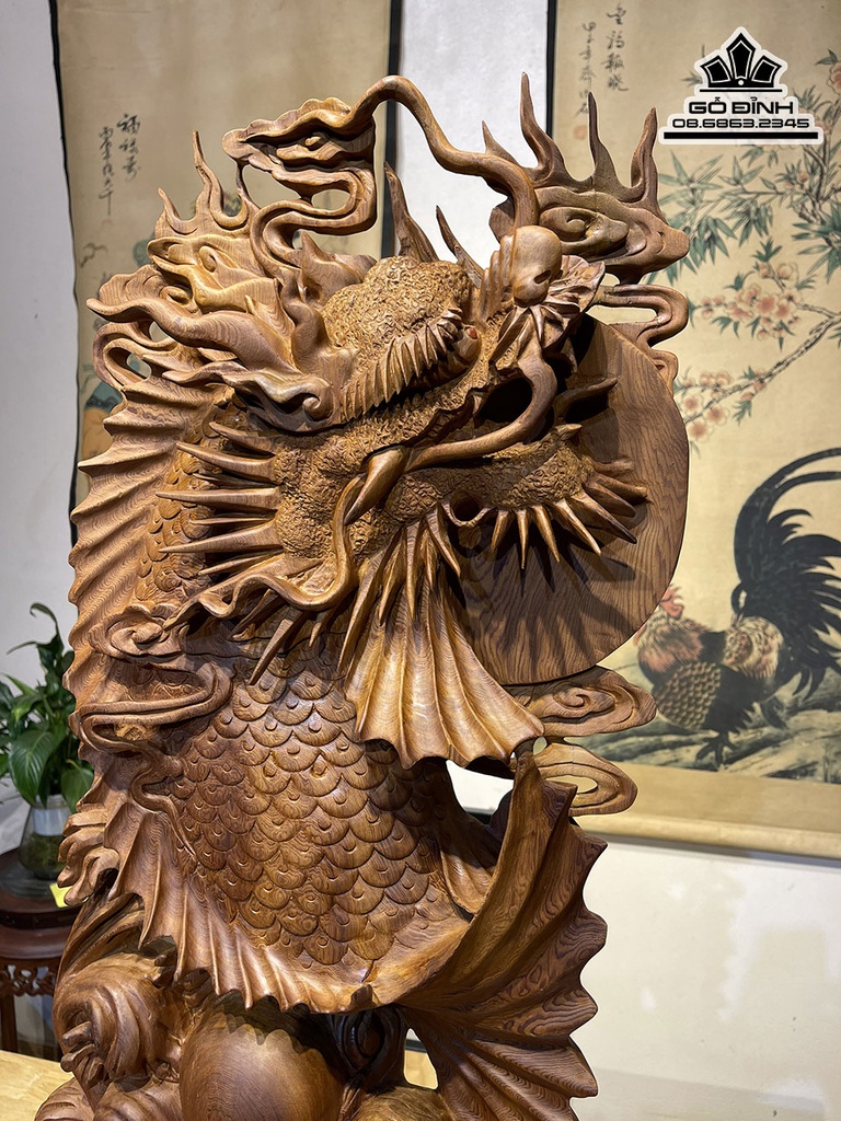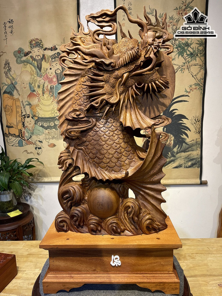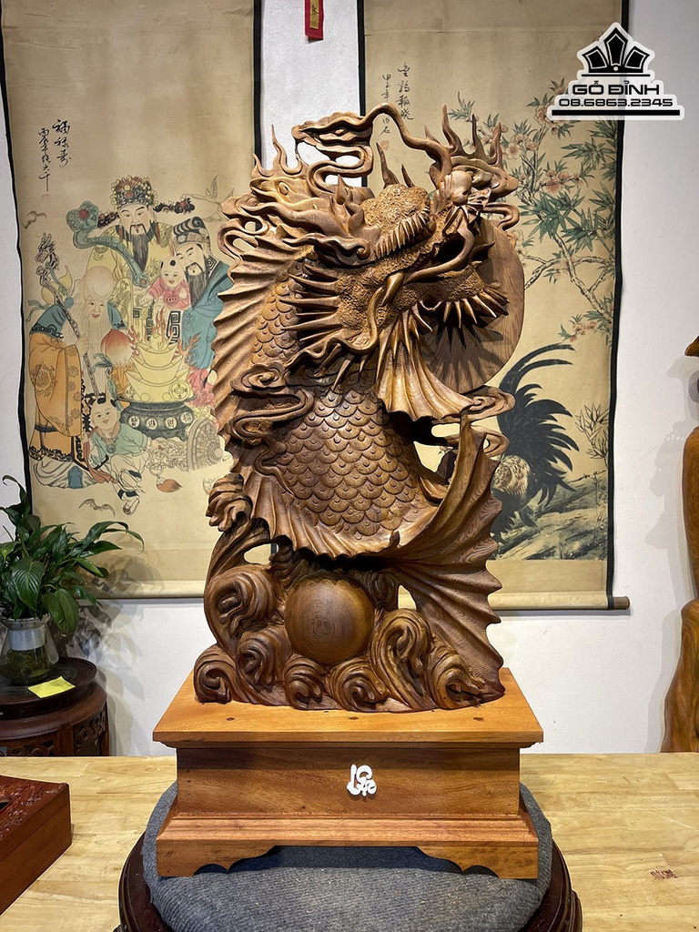 Tượng Cá Chép Hóa Rồng Gỗ Ngọc Am Cao 62 Ngang 35 Sâu 12 (cm)