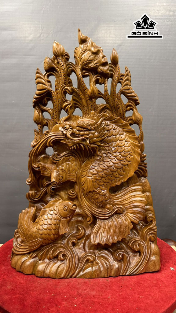 Tượng Cá Chép Hóa Rồng Gỗ Ngọc Am Cao 68 Ngang 43 Sâu 19 (cm)