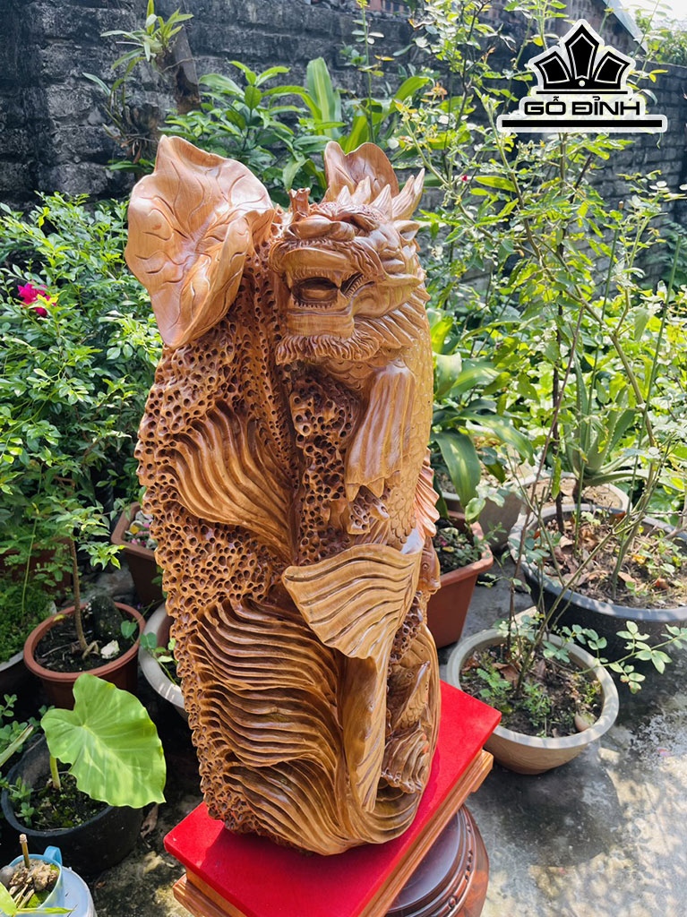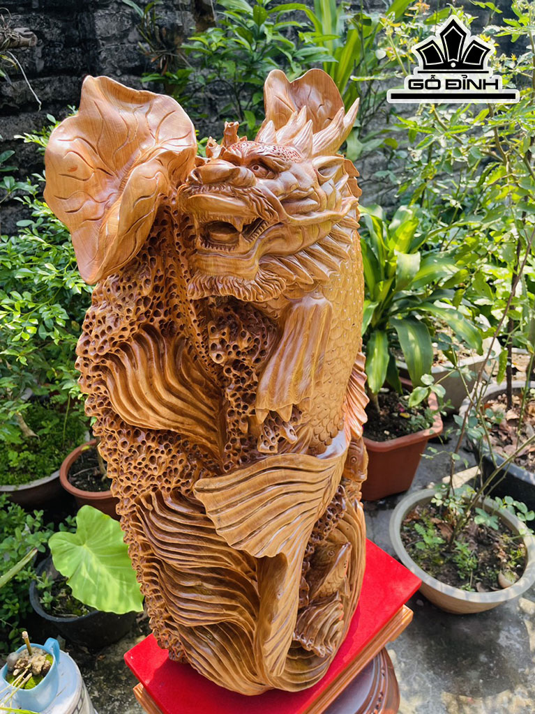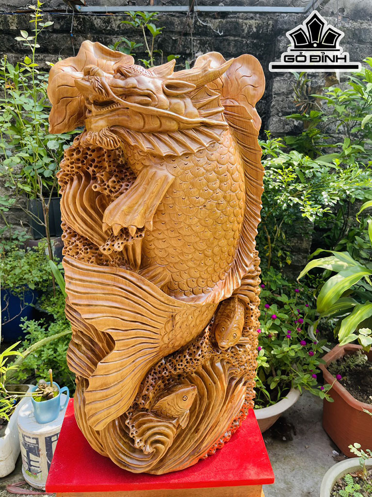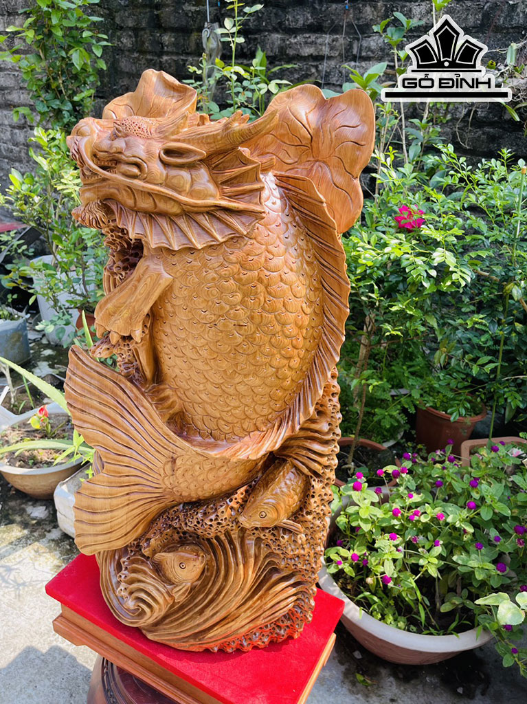 Tượng Cá Chép Hóa Rồng Gỗ Ngọc Am Cao 82 Ngang 41 Sâu 22 (cm) Cao Cả Kỷ 94