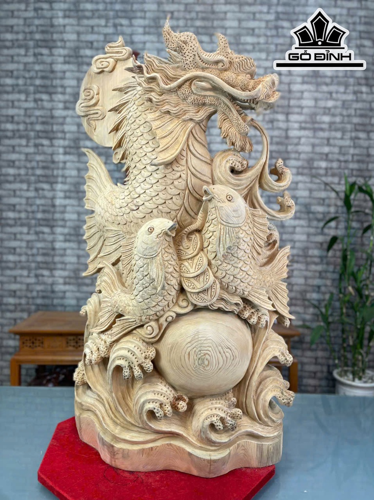 Tượng Cá Chép Hóa Rồng Gỗ Ngọc Am Cao 85 Ngang 48 Sâu 18 (cm)