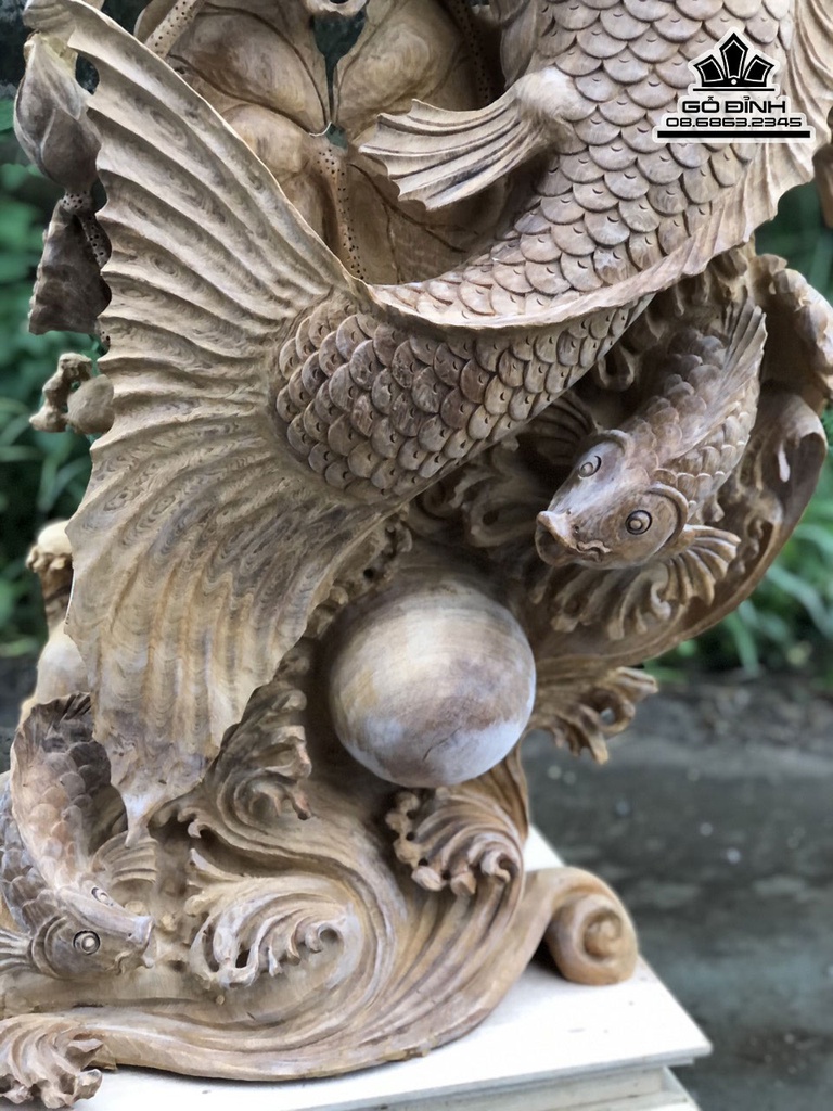 Tượng Cá Chép Hóa Rồng Gỗ Ngọc Am