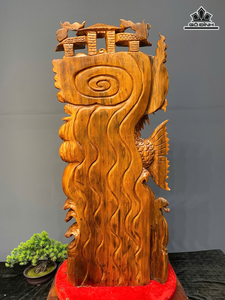 Tượng Cá Chép Hóa Rồng Gỗ Ngọc Am Cao 96 Ngang 42 Sâu 17 (cm)