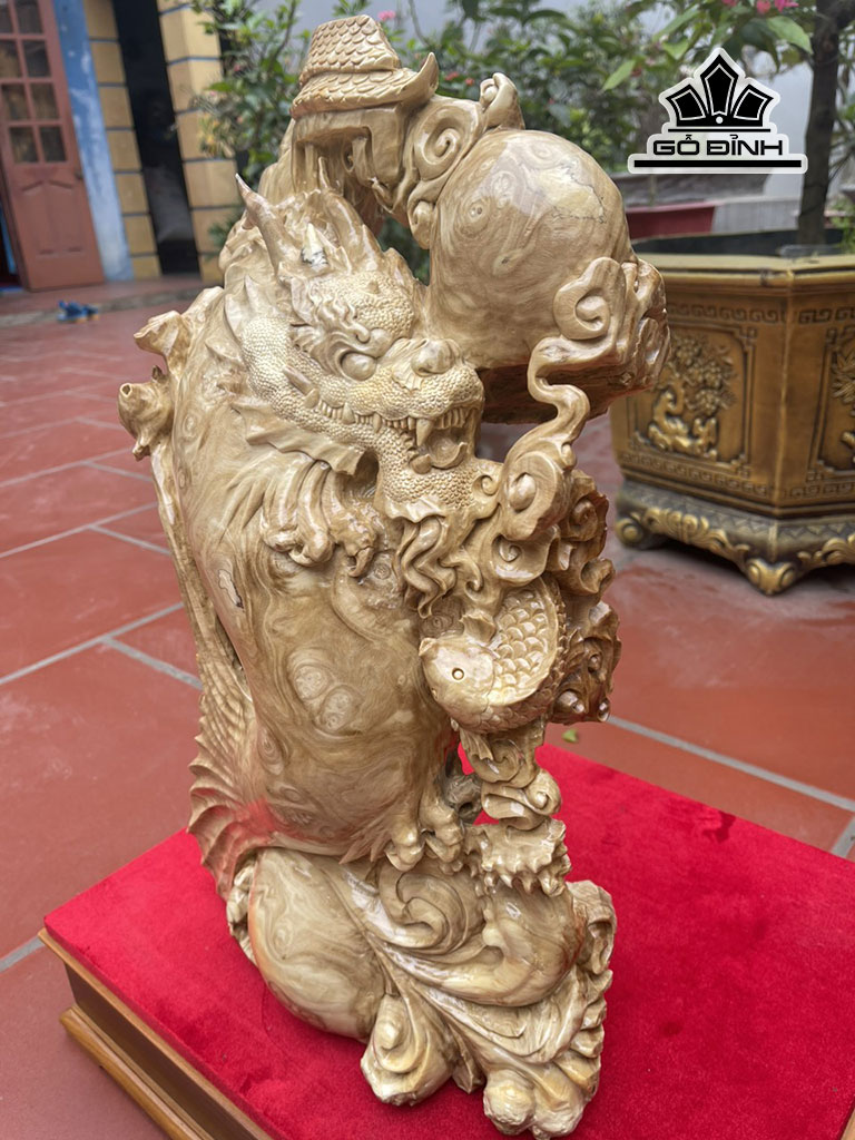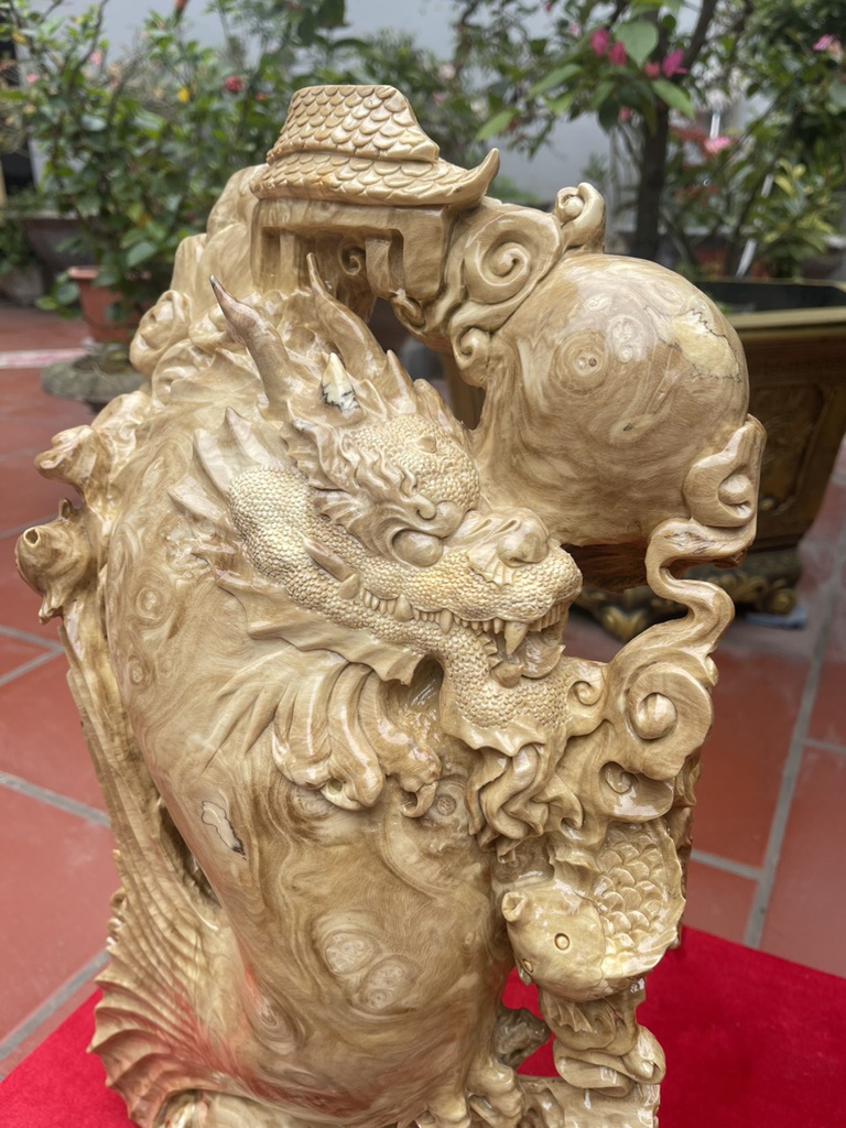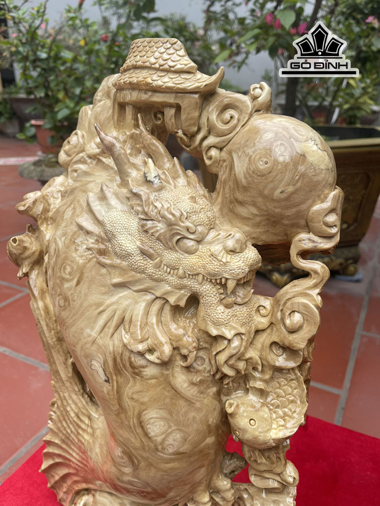 Tượng Cá Chép Hóa Rồng Gỗ Nu Nghiến