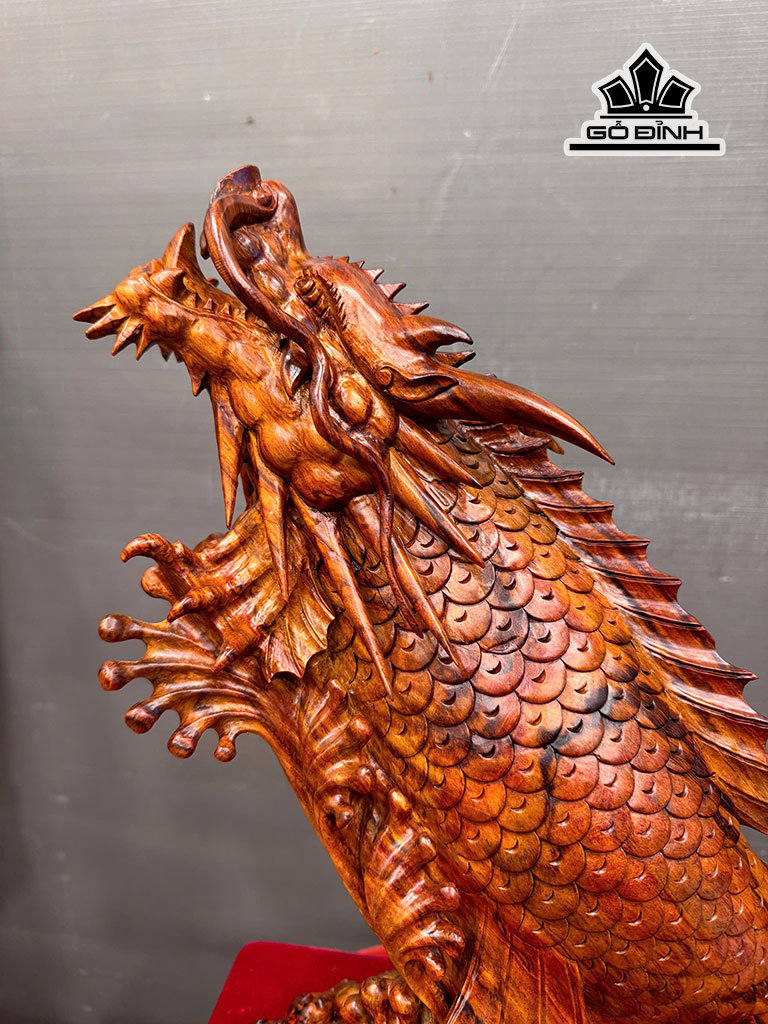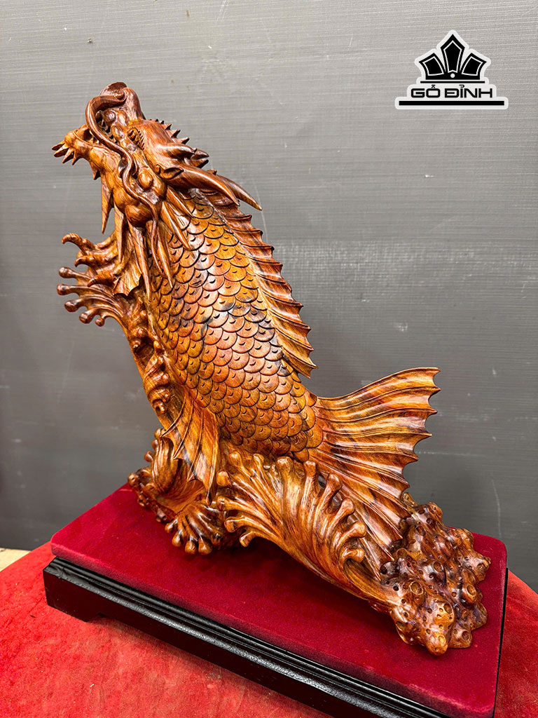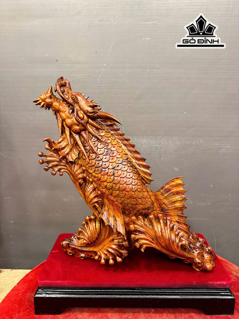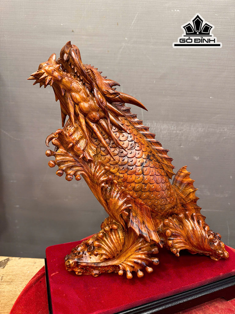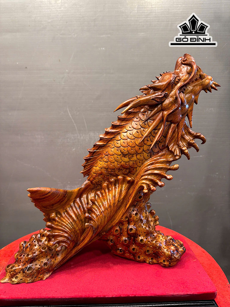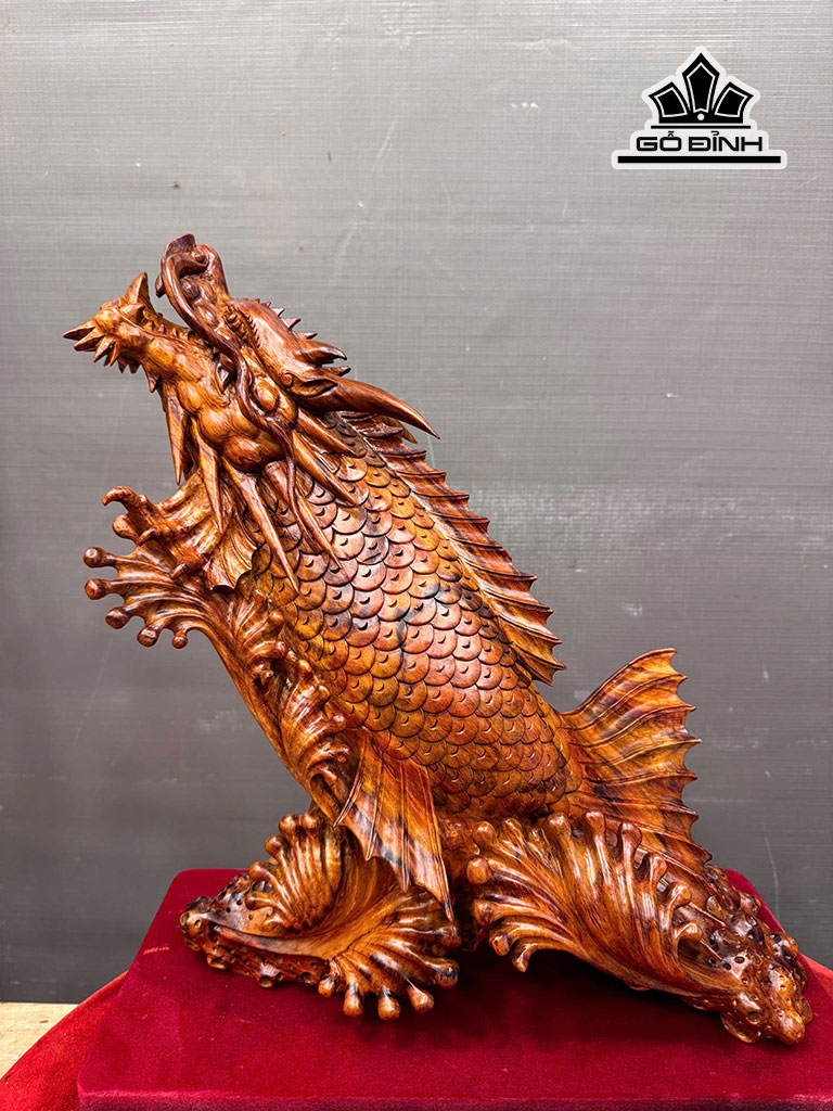 Tượng Cá Chép Hóa Rồng Gỗ Sưa Cao Cả Kỷ 46 Ngang 34 Sâu 15 (cm) - Kỷ 7 (cm)