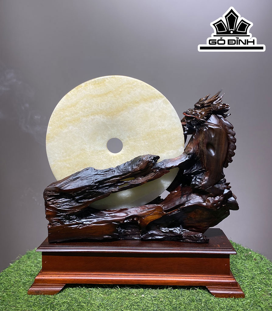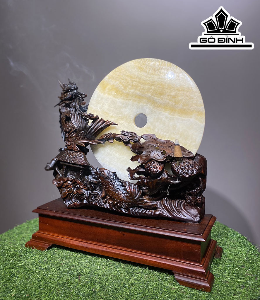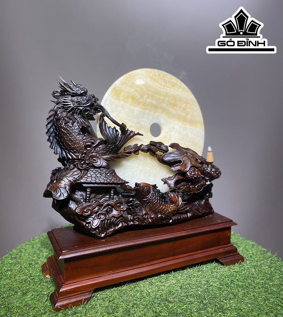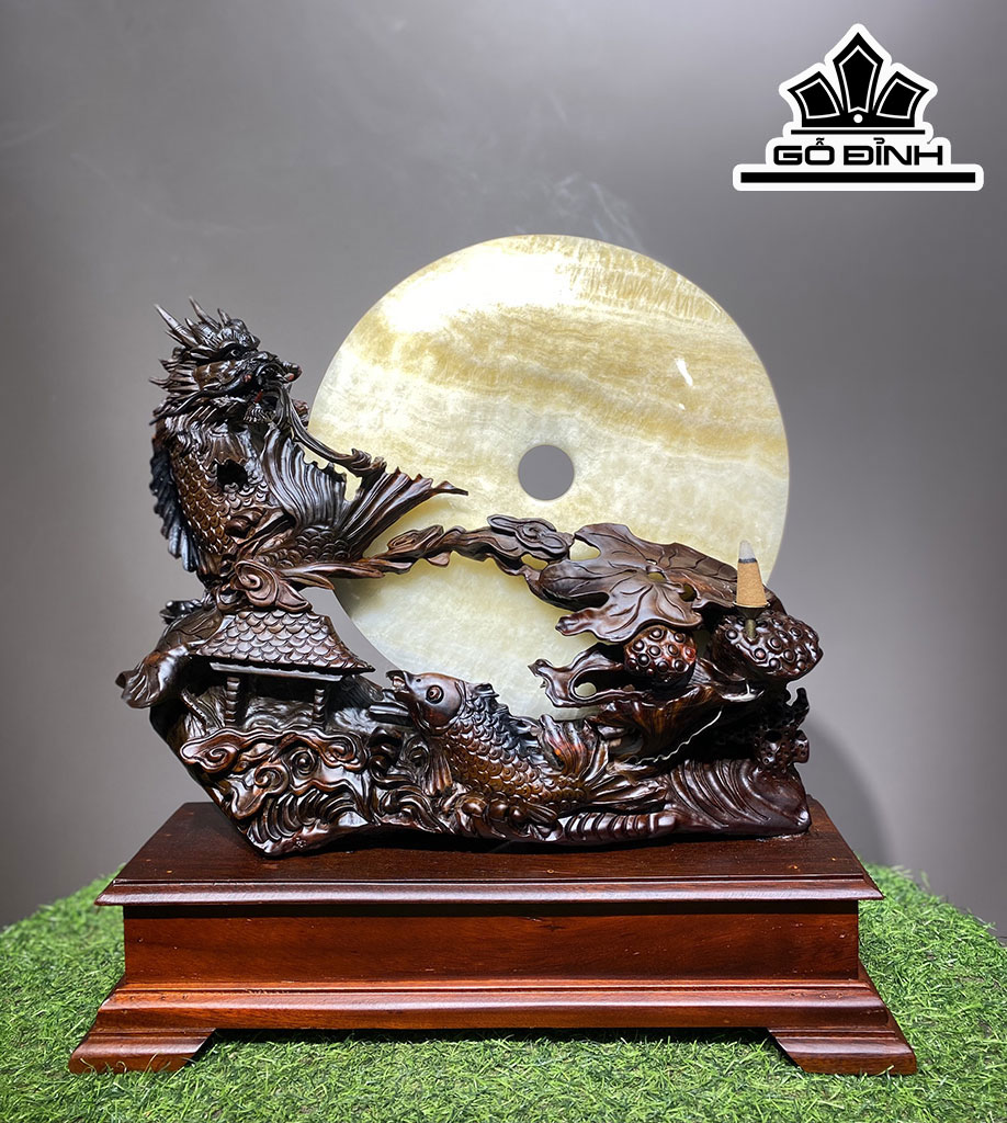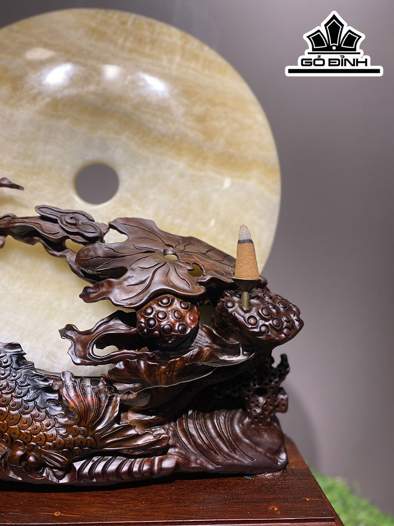 Tượng Cá Chép Hóa Rồng Gỗ Trắc Cao 46 Ngang 43 Sâu 12 (cm)