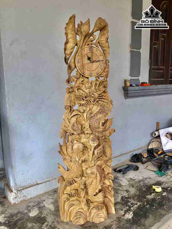 Tượng Cá Chép Hóa Rồng Gỗ Xá Xị ( Gù Hương ) Cao 142 Rộng 43 Dày 25 (cm)