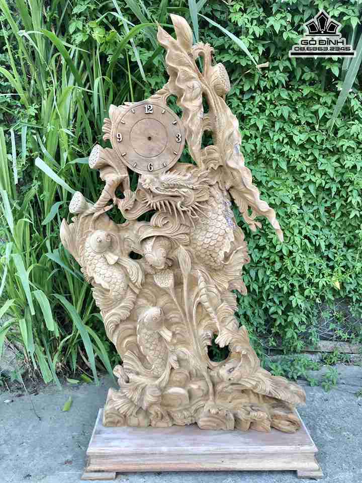 Tượng Cá Chép Hóa Rồng Gỗ Xá Xị ( Gù Hương ) Cao 130 Ngang 66 Sâu 23 (cm)
