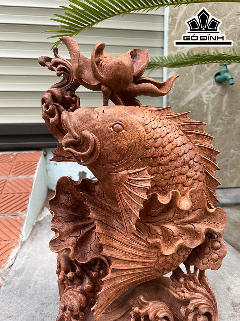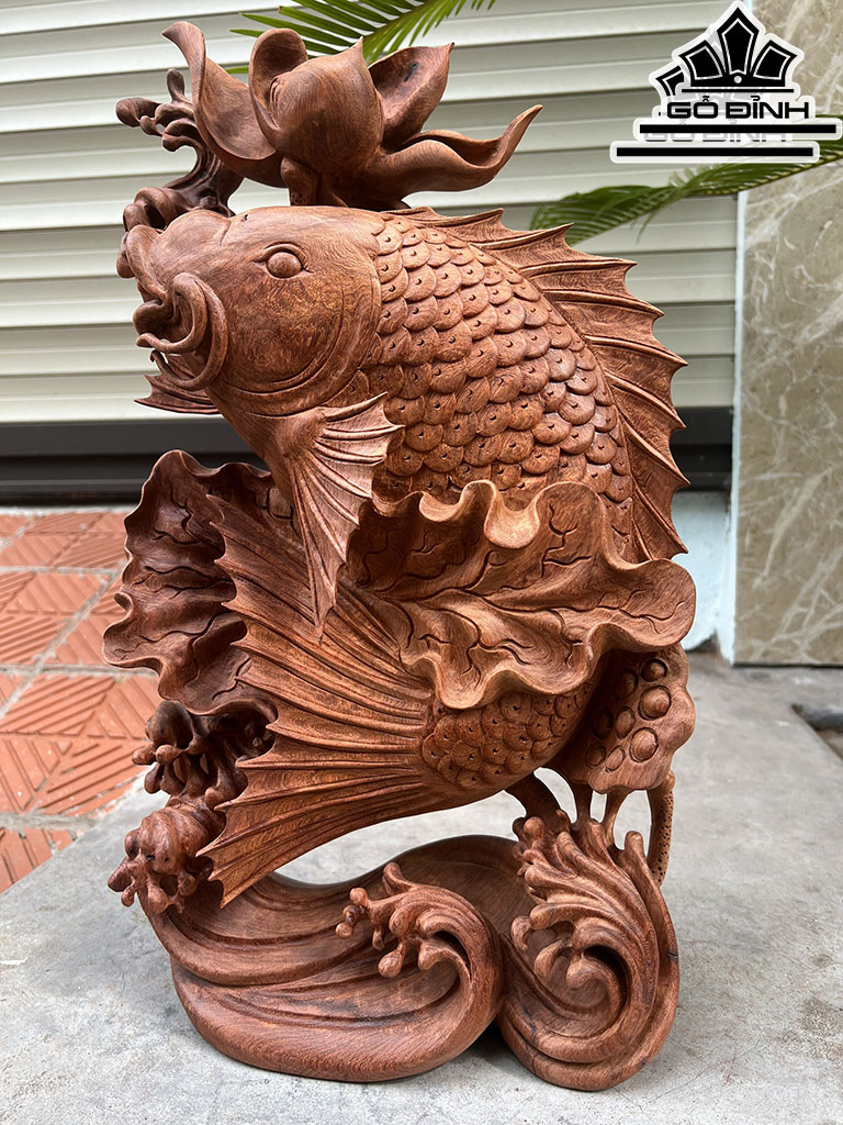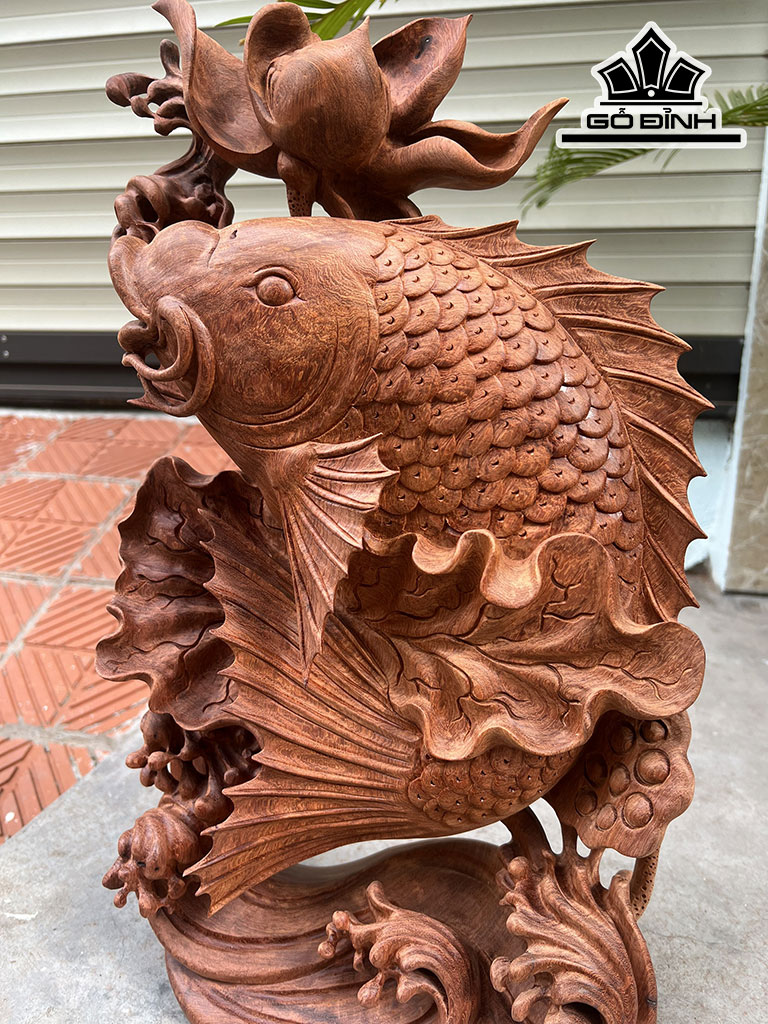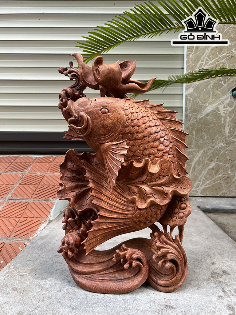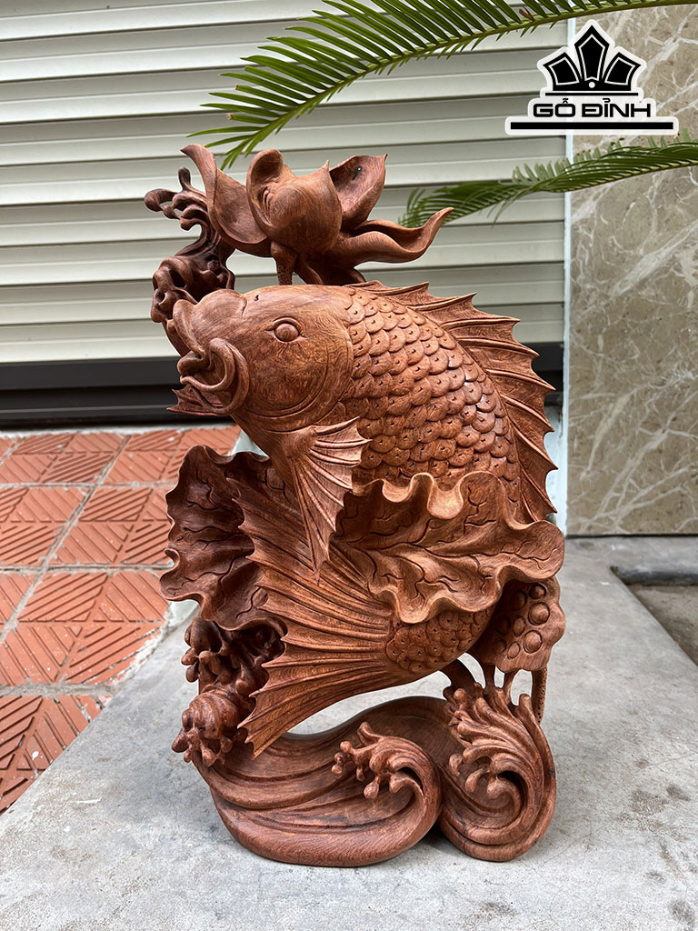 Tượng Cá Chép Tài Lộc Gỗ Hương Cao 47 Ngang 27 Sâu 12 (cm)
