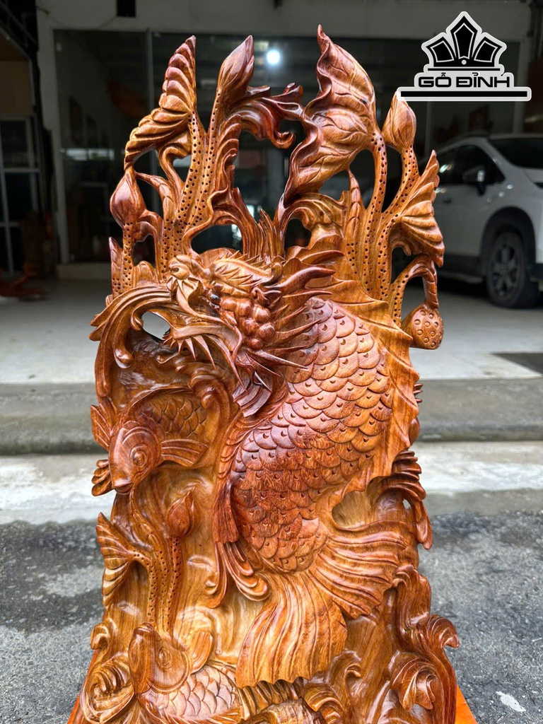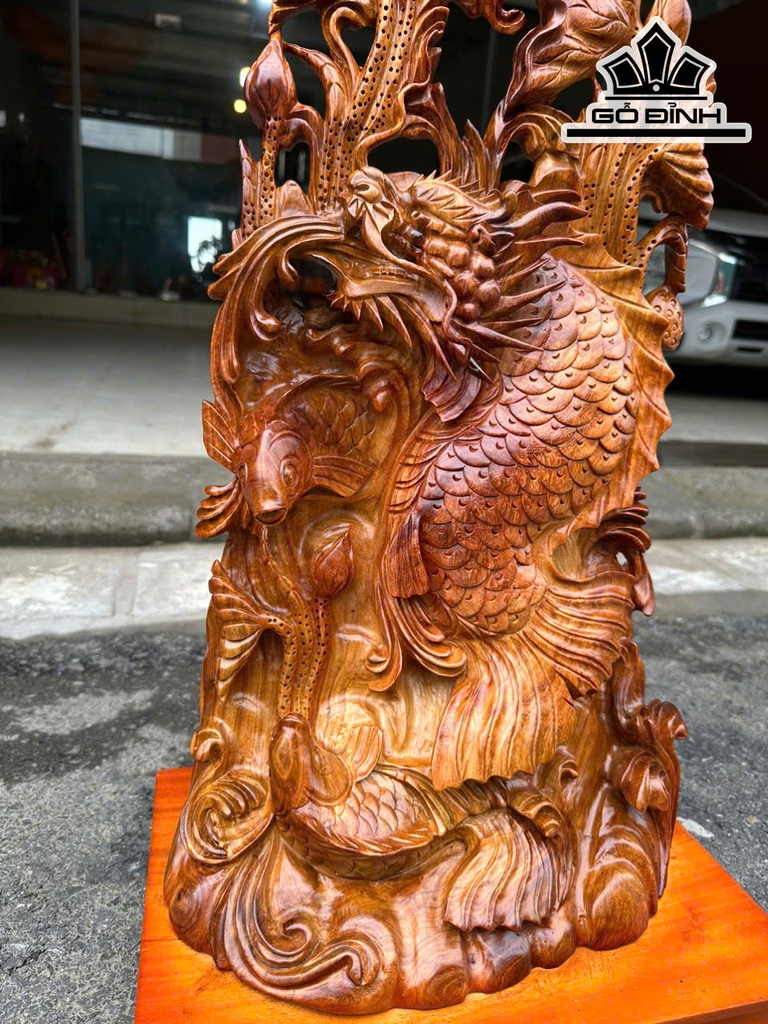 Tượng Cá Chép Vượt Vũ Môn Gỗ Hương Cao Cả Kỷ 68 Ngang 36 Sâu 23 (cm) - Kỷ Cao 8 (cm)