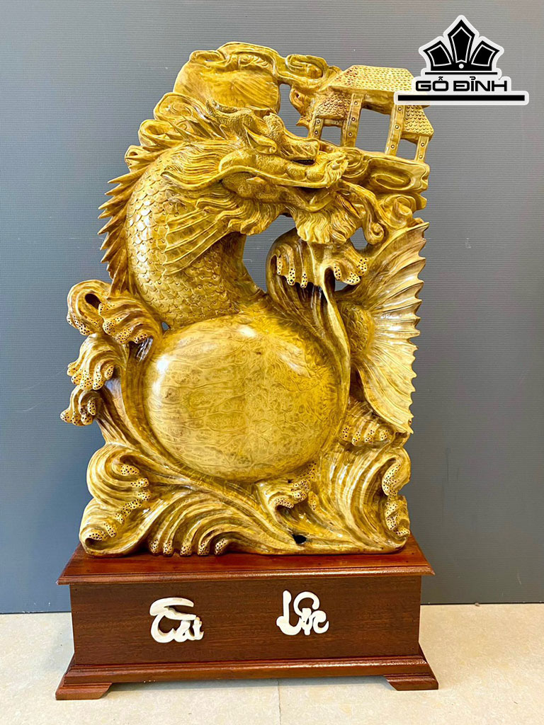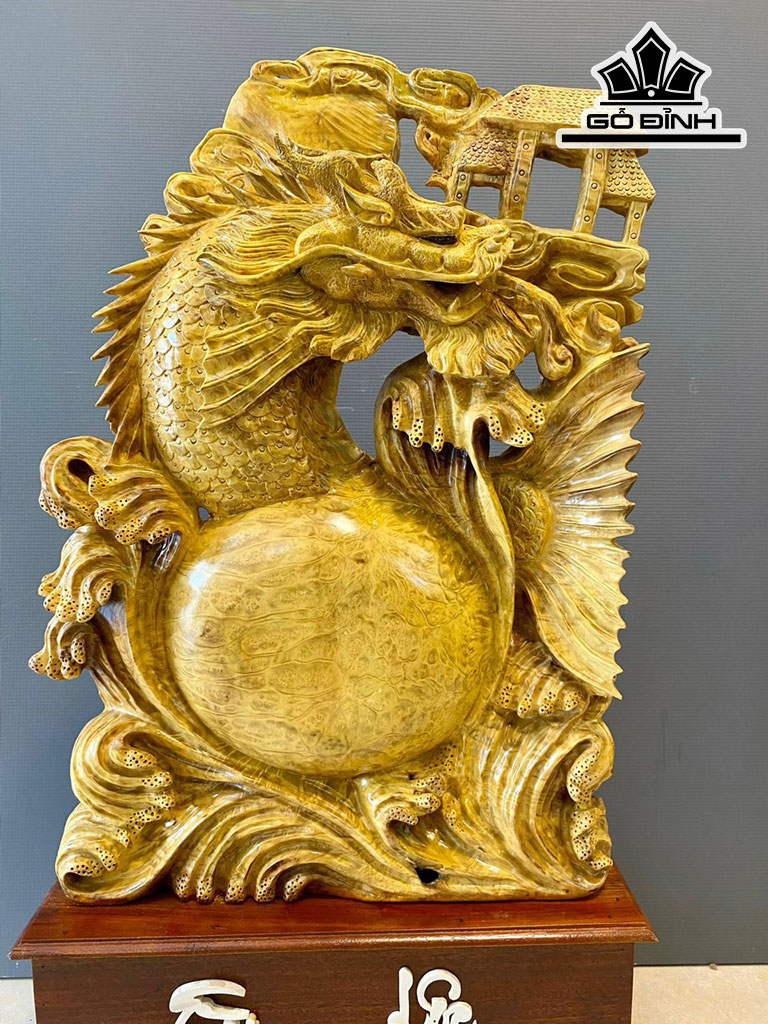 Tượng Cá Chép Vượt Vũ Môn Gỗ Nu Kháo Cao 91 Ngang 55 Sâu 19 (cm)