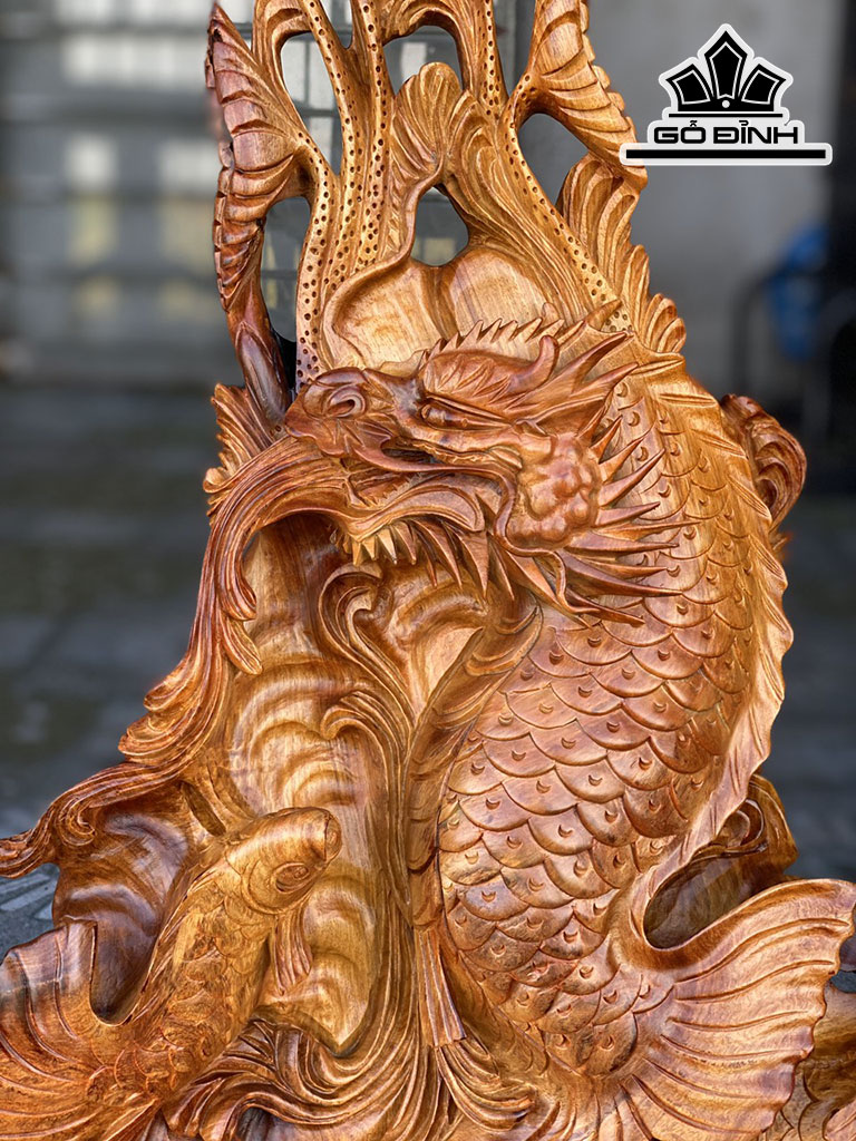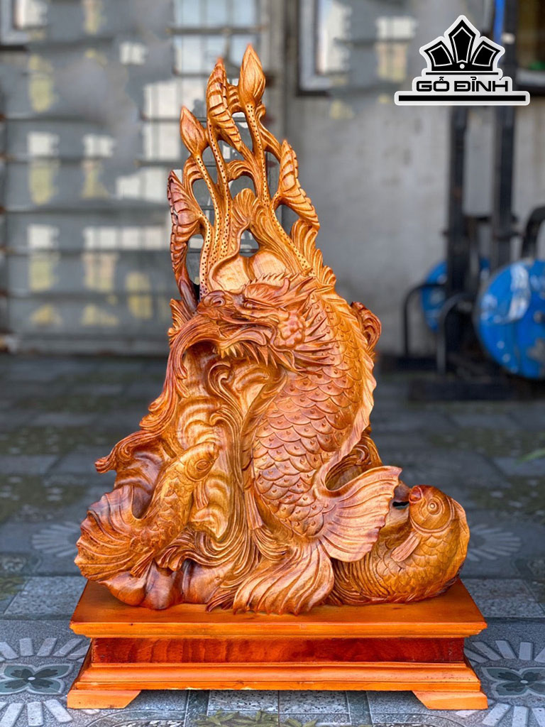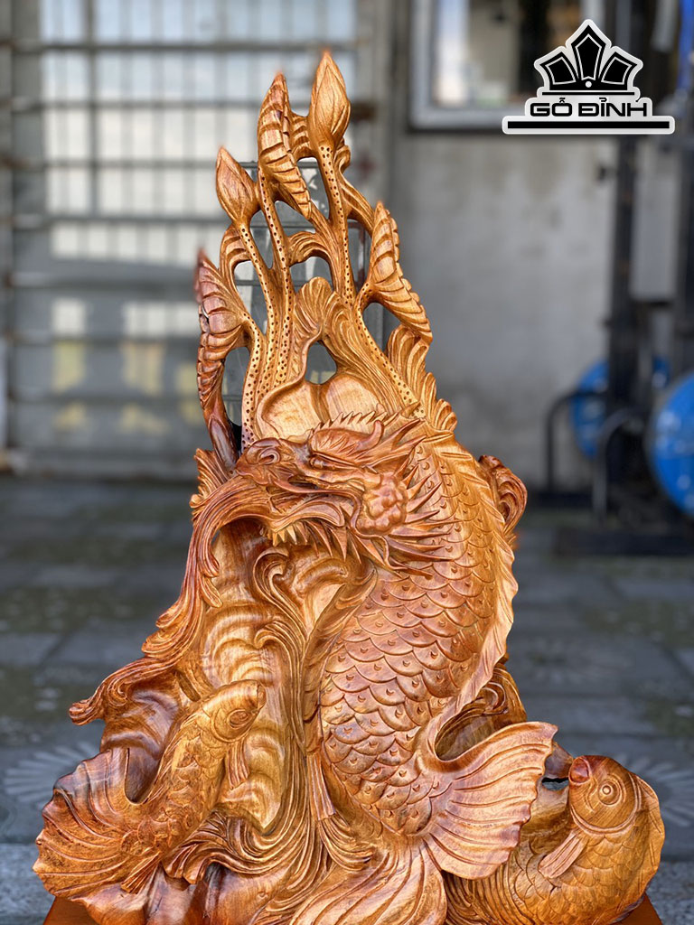 Tượng Cá Chép Vượt Vũ Môn Hóa Rồng Gỗ Hương Cao Cả Kỷ 64 Ngang 40 Sâu 18 (cm)