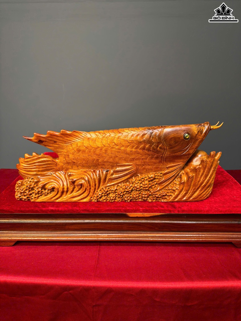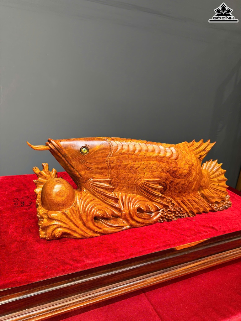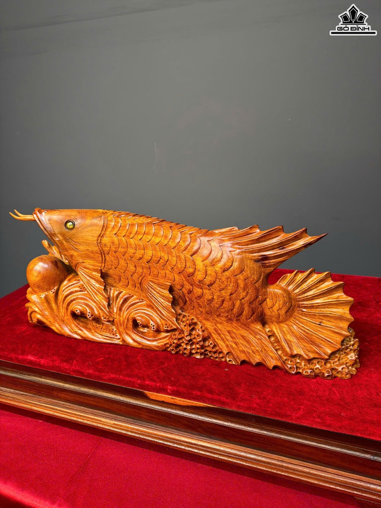 Tượng Cá Kim Long Gỗ Hương Cao 21 Ngang 55 Sâu 11 (cm)