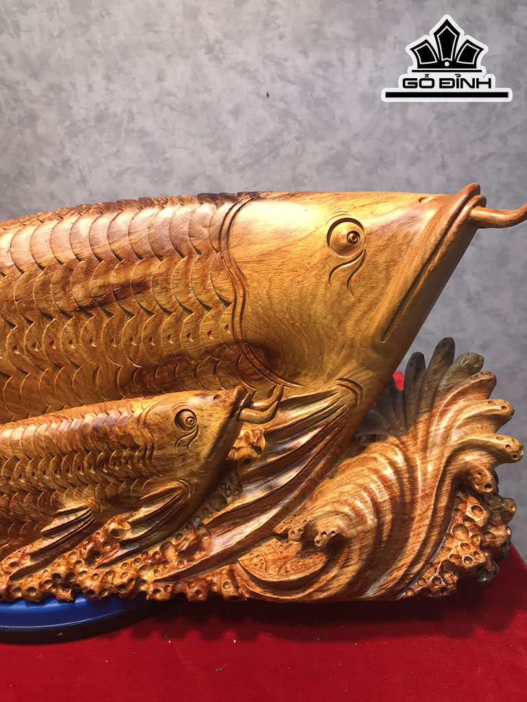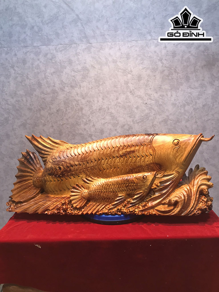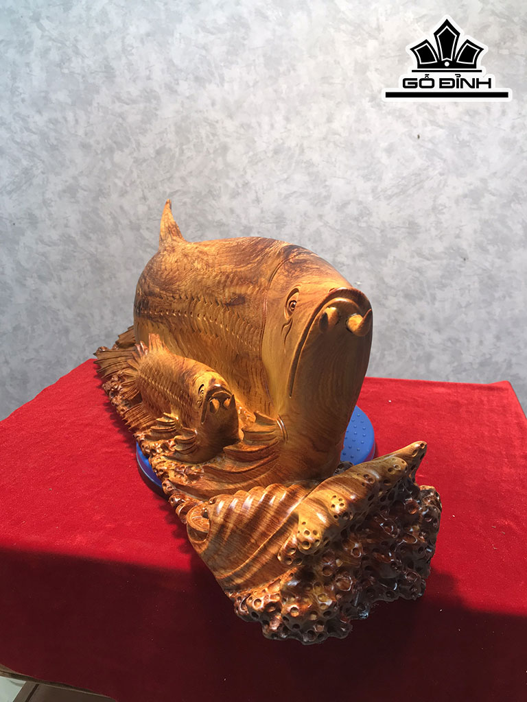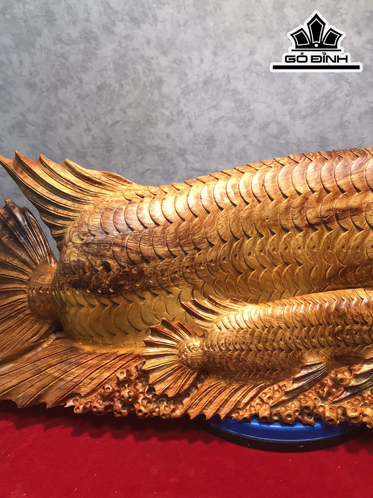 Tượng Cá Kim Long Gỗ Hương Cao 22 Ngang 62 Sâu 16 (cm)