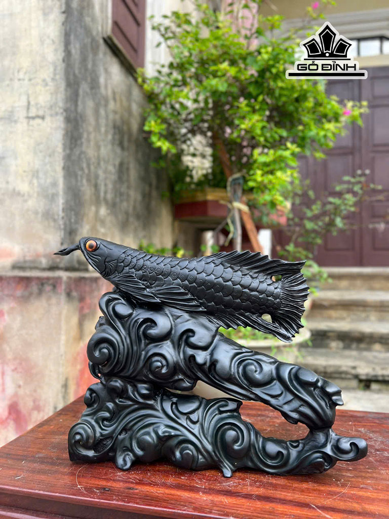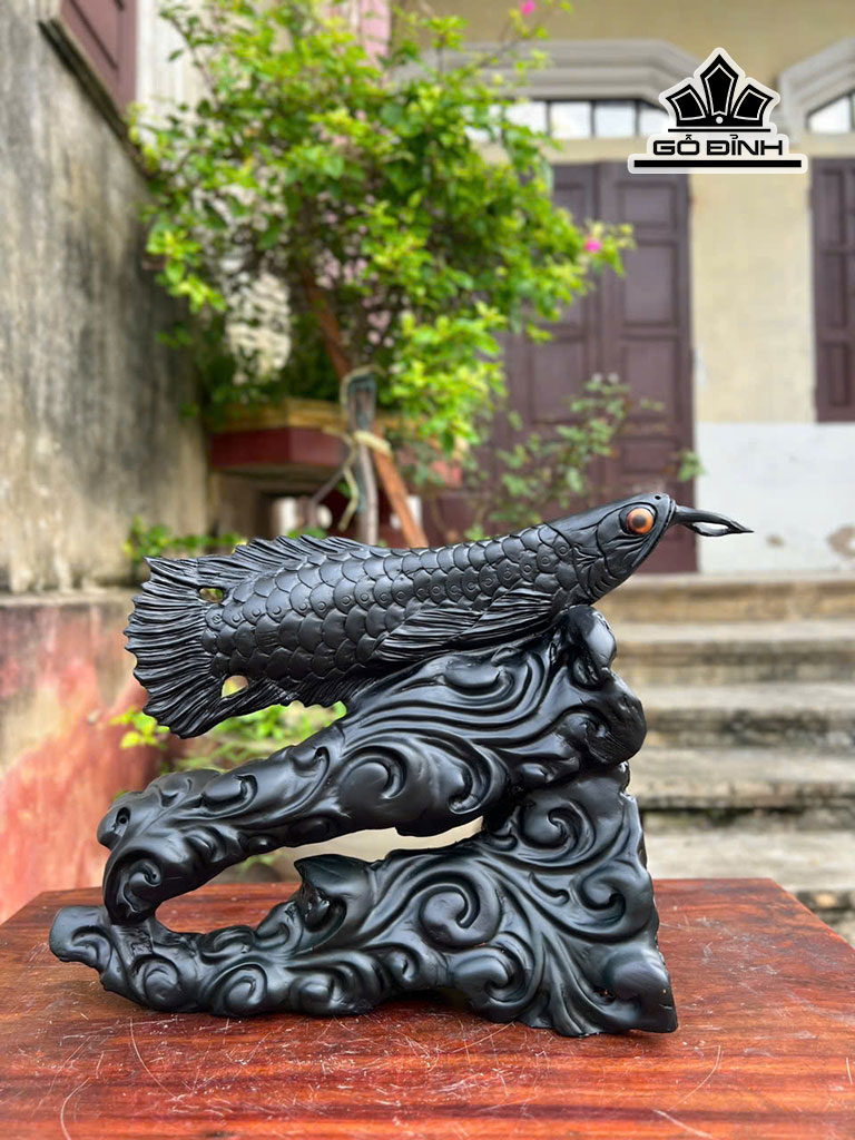 Tượng Cá Kim Long Gỗ Mun Sừng Cao 30 Ngang 40 Sâu 11 (cm)