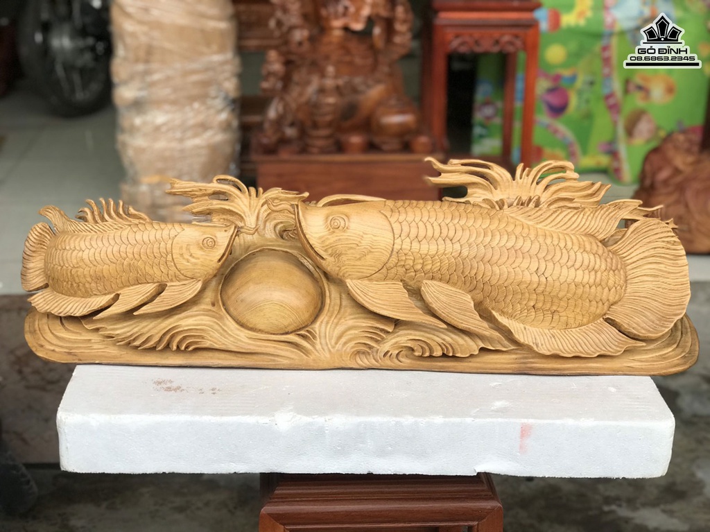 Tượng Cá Kim Long Gỗ Pomu