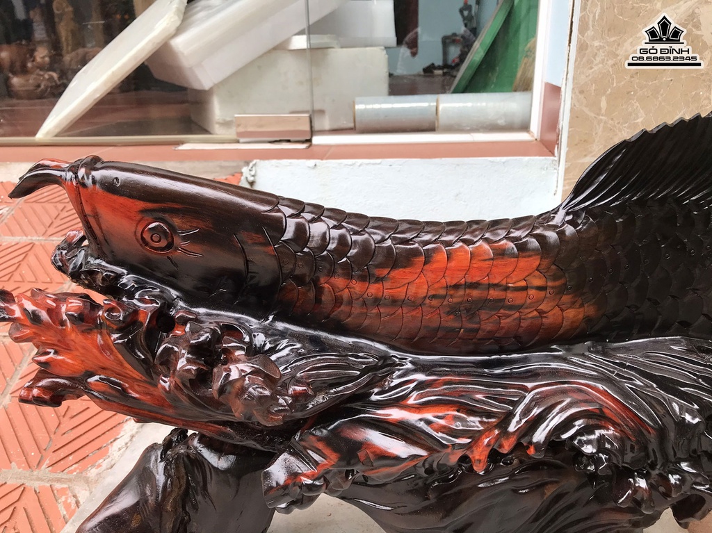 Tượng Cá Kim Long Gỗ Trắc Cao 42 Ngang 70 Sâu 20 (cm)