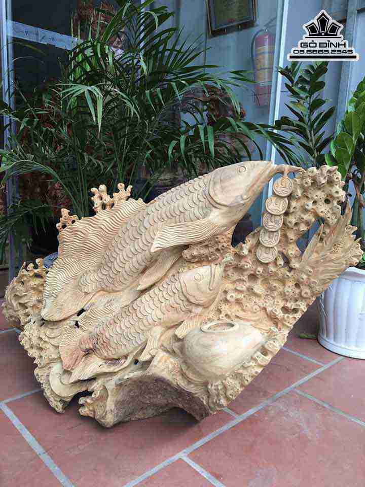 Tượng Cá Kim Long Gỗ Xá Xị ( Gù Hương ) Cao 61 Rộng 92 Dày 38 (cm)