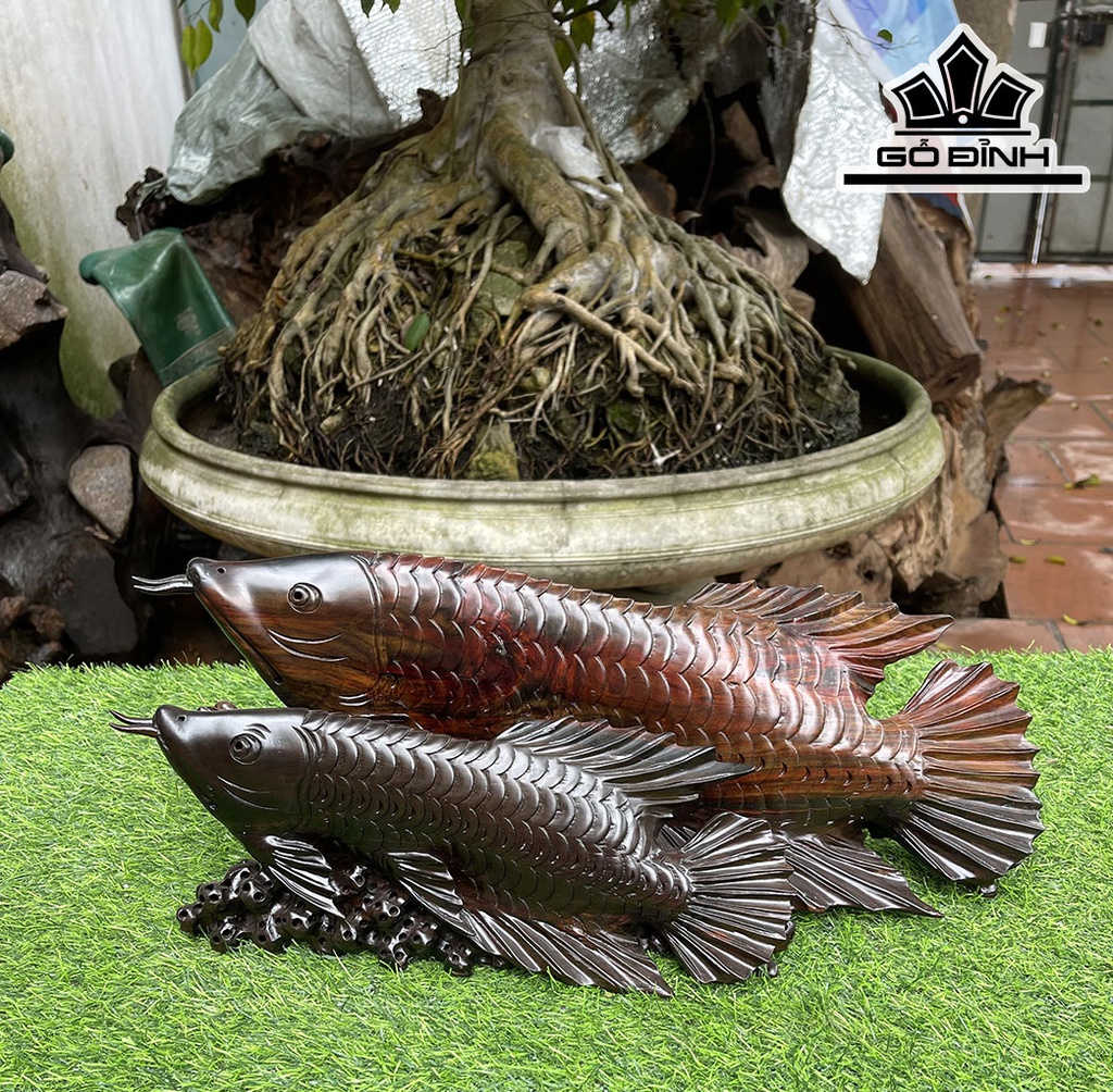 Tượng Cá Kim Long Mẫu Tử Gỗ Trắc Cao 18 Ngang 48 Sâu 19 (cm)