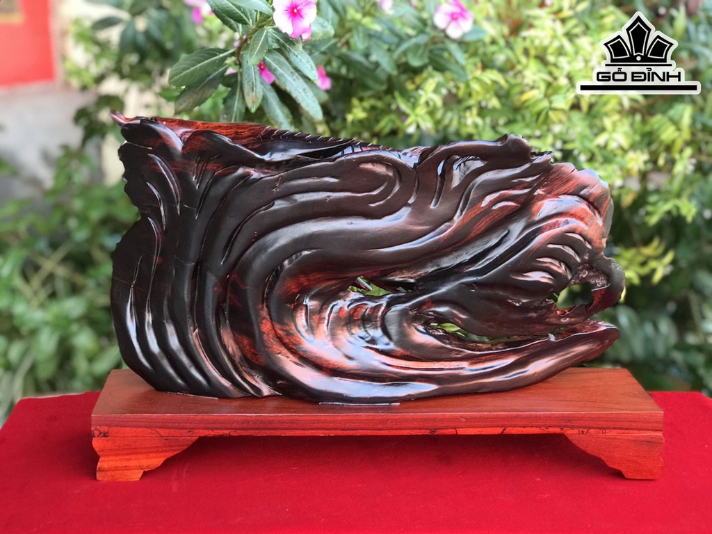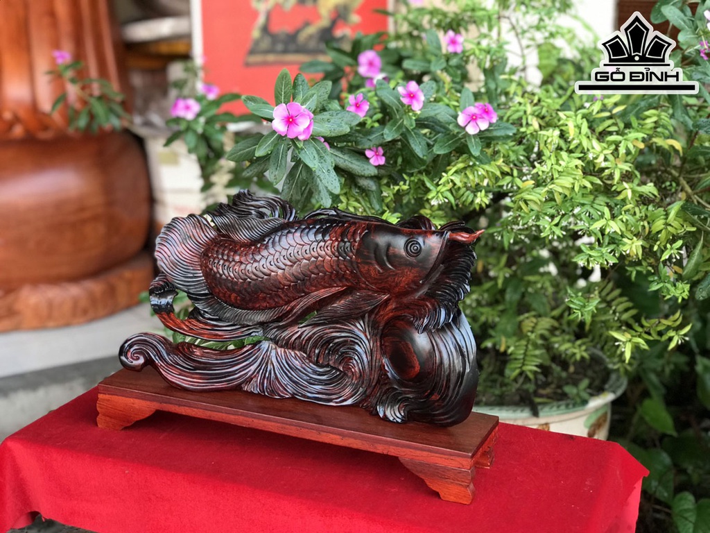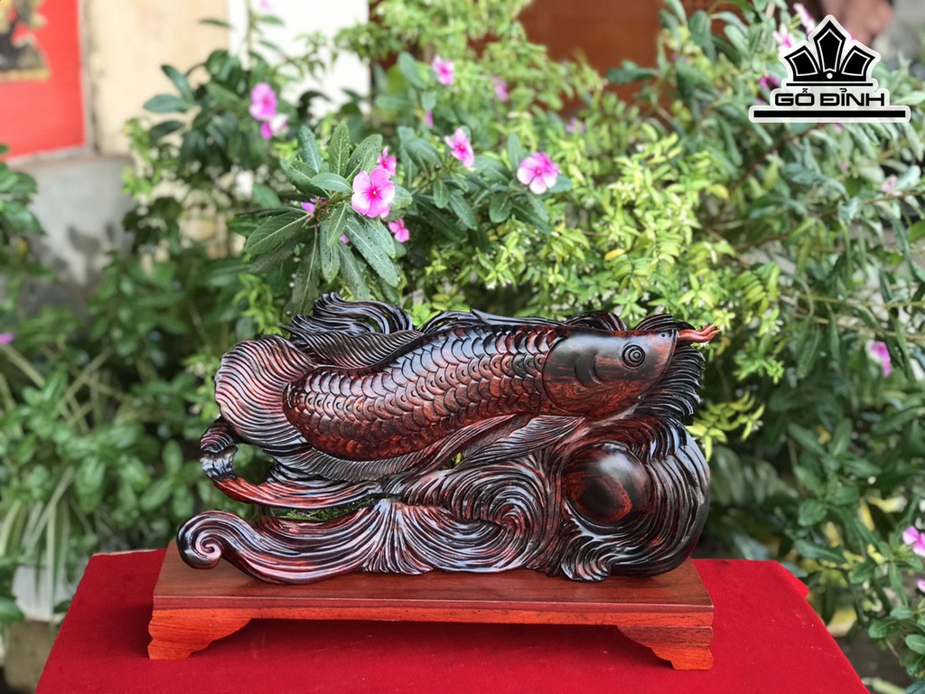 Tượng Cá Kim Long Tài Lộc Gỗ Trắc Cao 27,5 Ngang 41 Sâu 8 (cm)