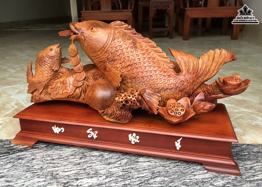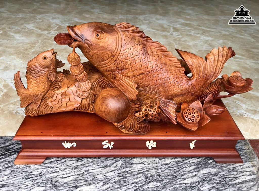 Tượng Cá Mẫu Tử Gỗ HƯơng