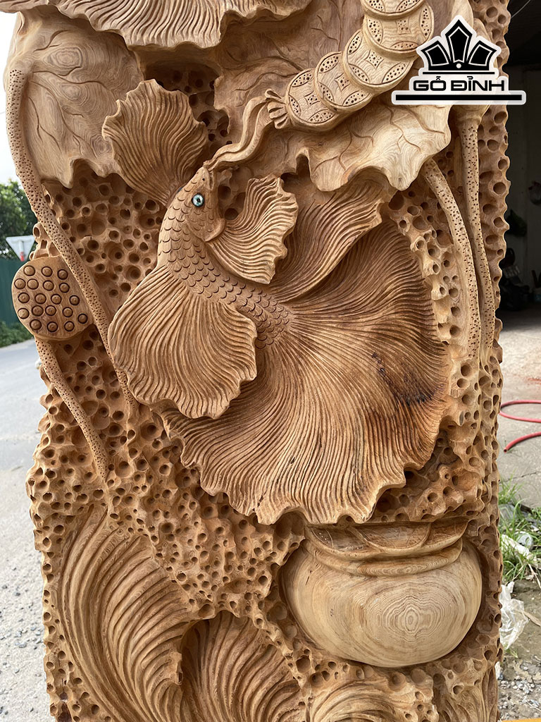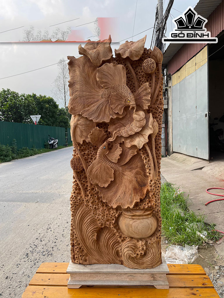 Tượng Cá Xiêm Đôi Gỗ Ngọc Am Cao 130 Ngang 52 Sâu 15 (cm)