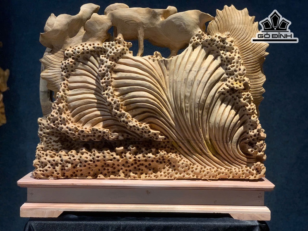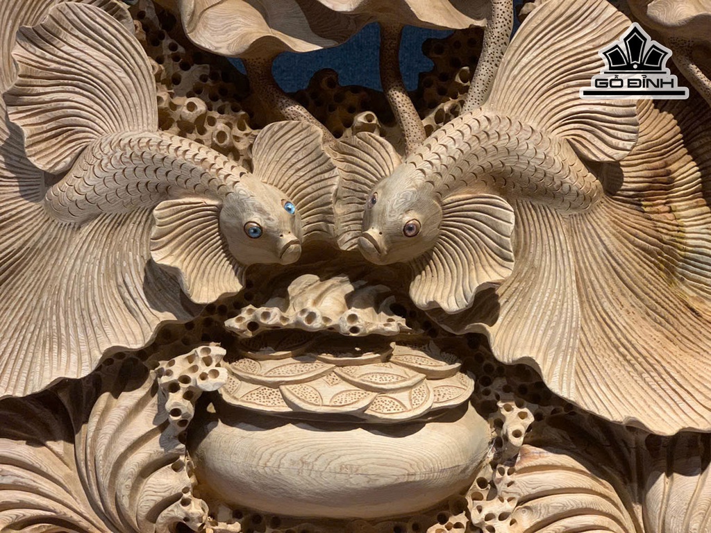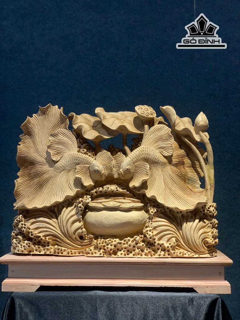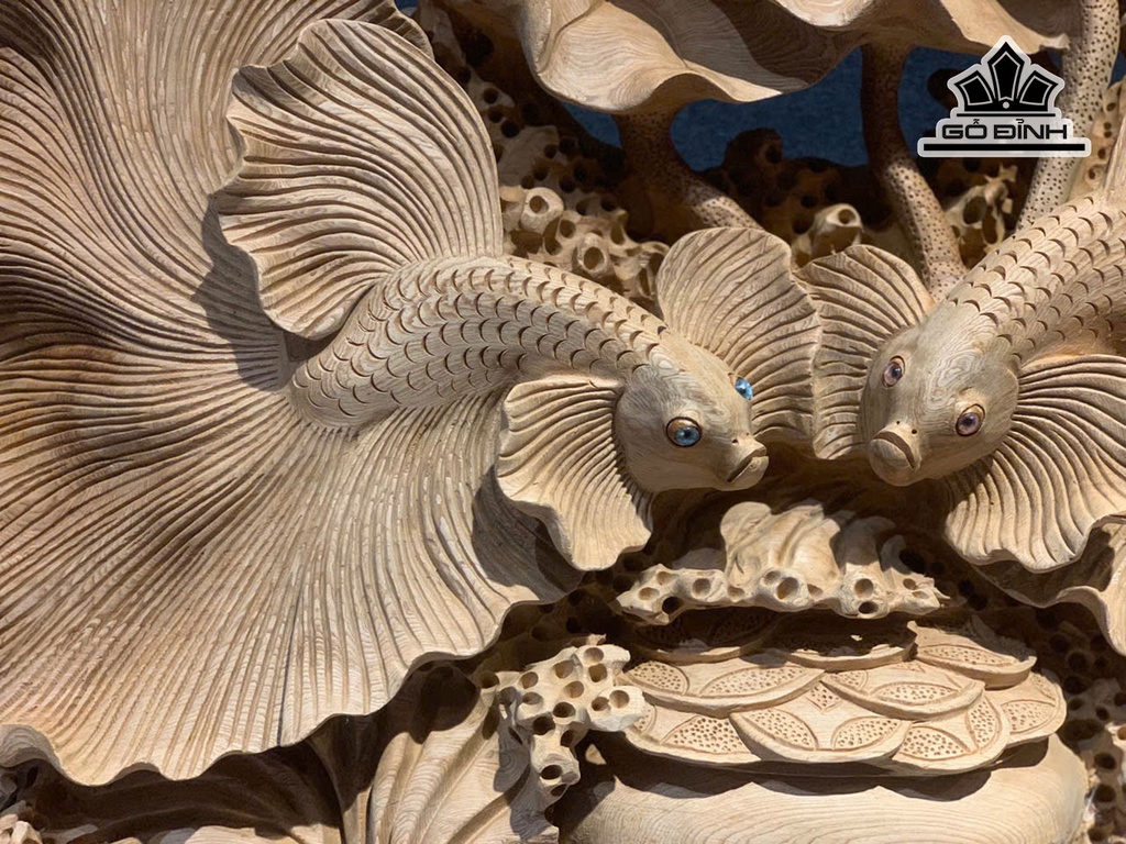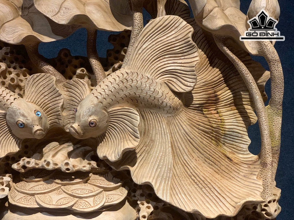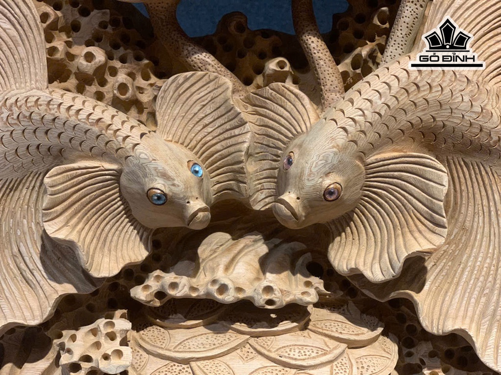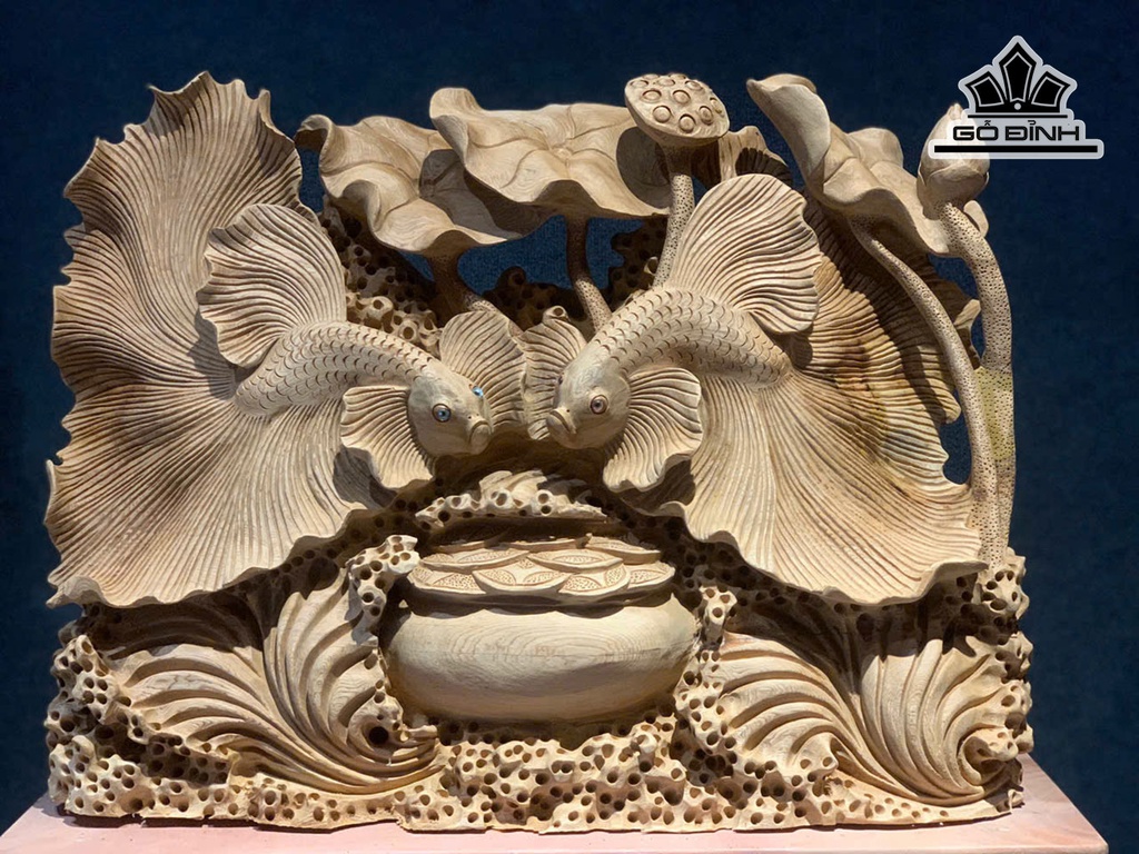 Tượng Cá Xiêm Đôi Gỗ Ngọc Am Cao 50 Ngang 63 Sâu 17 (cm)
